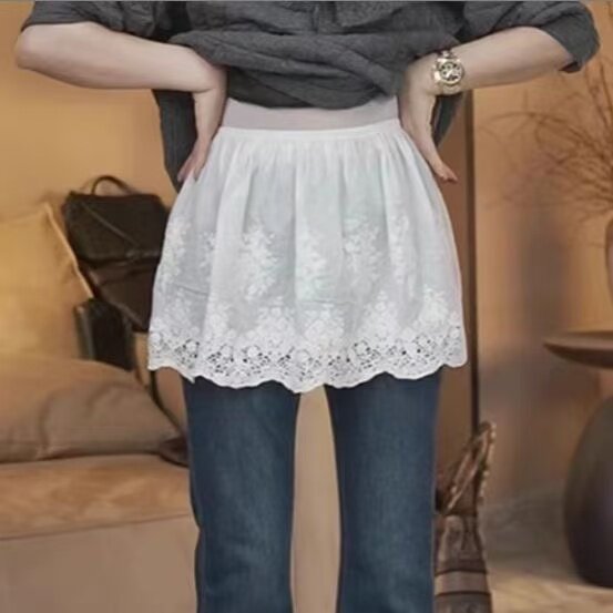 网红新款蕾丝A字半身裙女高腰修身遮屁股百搭短裙休闲打底裙屁帘