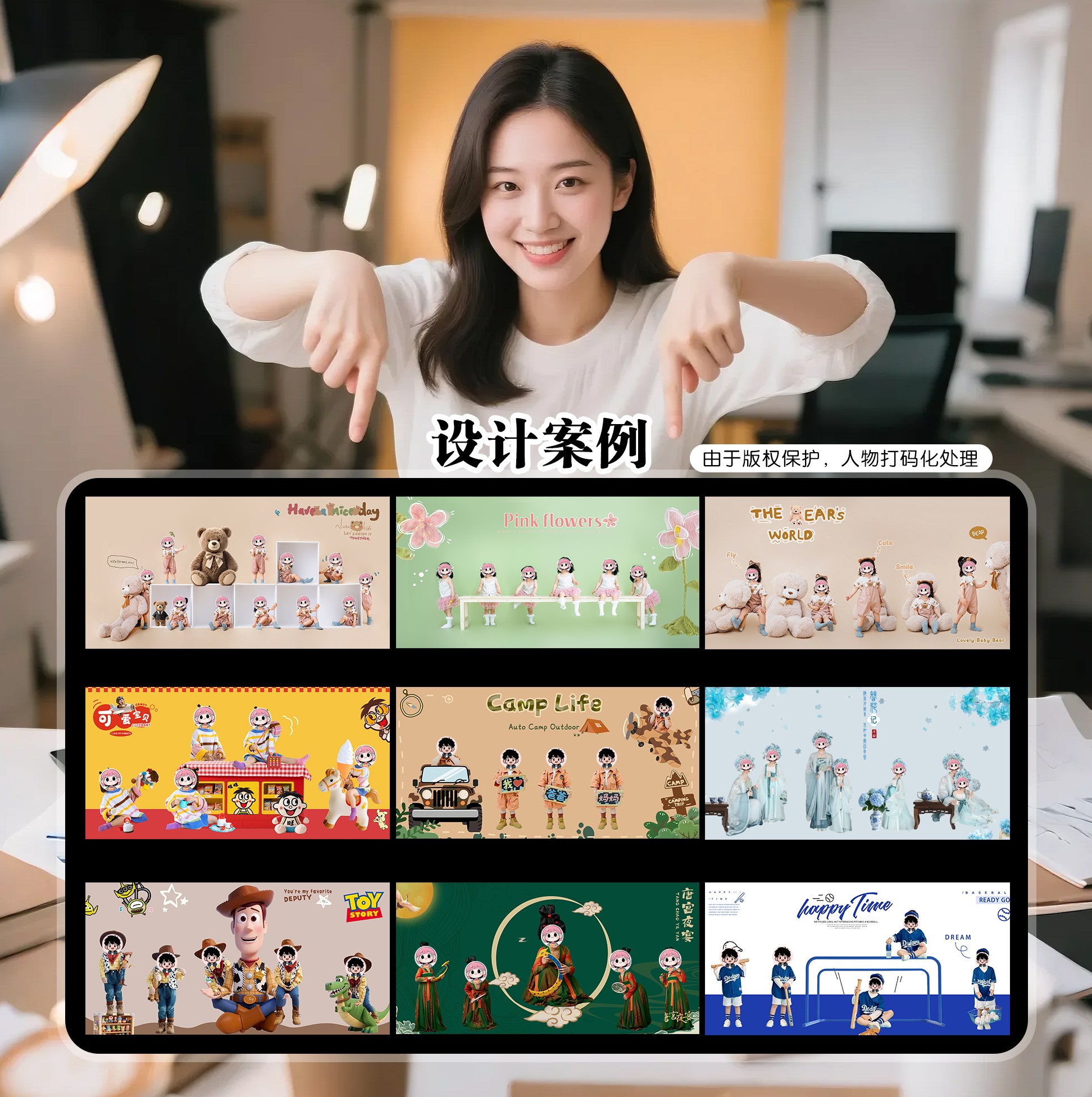 代做溶图设计联动图儿童摄影特色排版二销排版N8模板相册设计