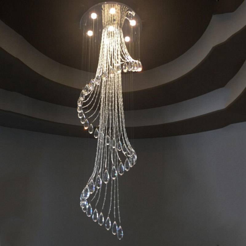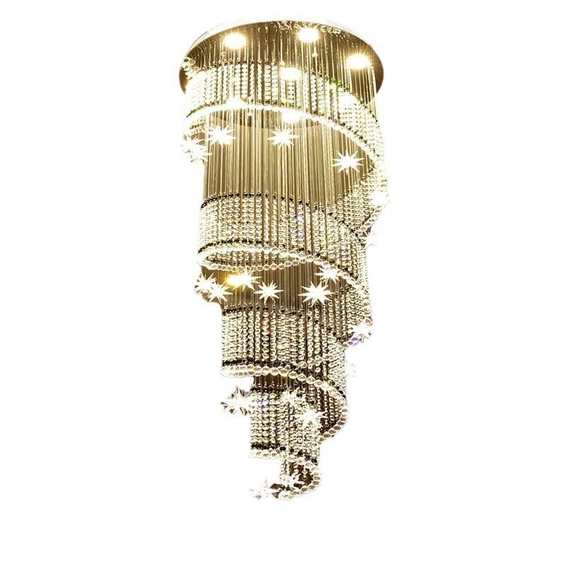 古镇厂家分销复式楼梯水晶吊灯现代简约奢华别墅旋转水晶吊线灯具
