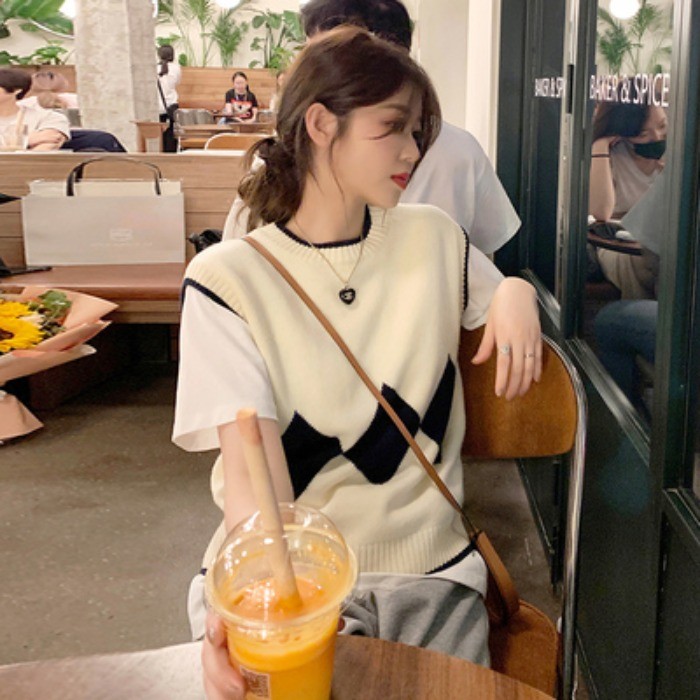 小香风菱格毛衣背心马甲女