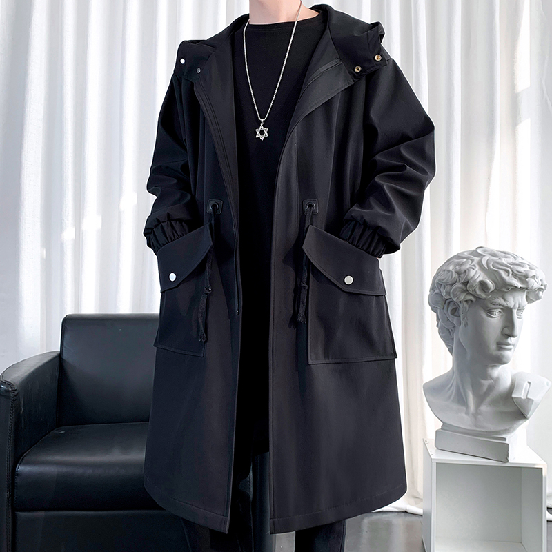 中长款加棉风衣男连帽上衣长款过膝大衣轻奢派克服大码披风潮外套