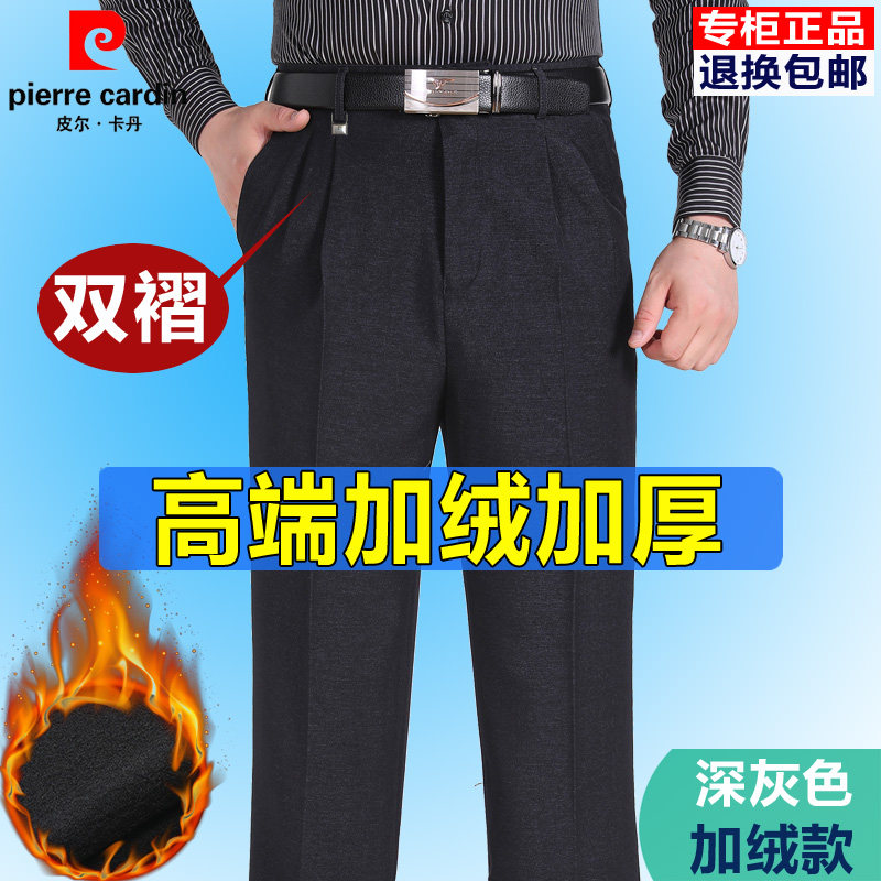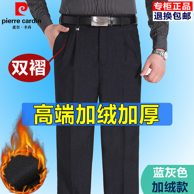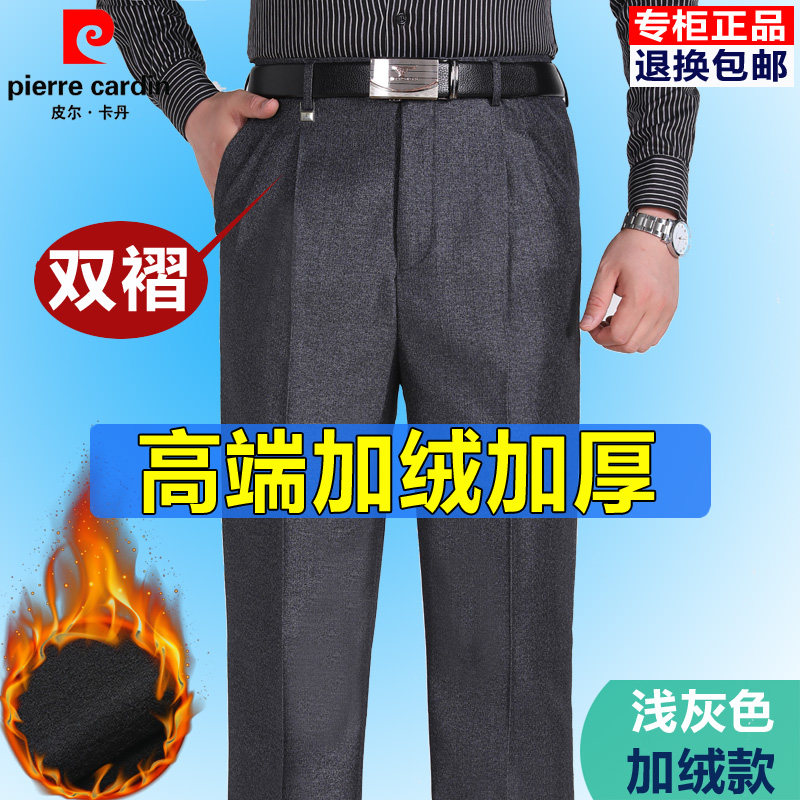 皮尔卡丹冬季加绒西裤男双褶宽松