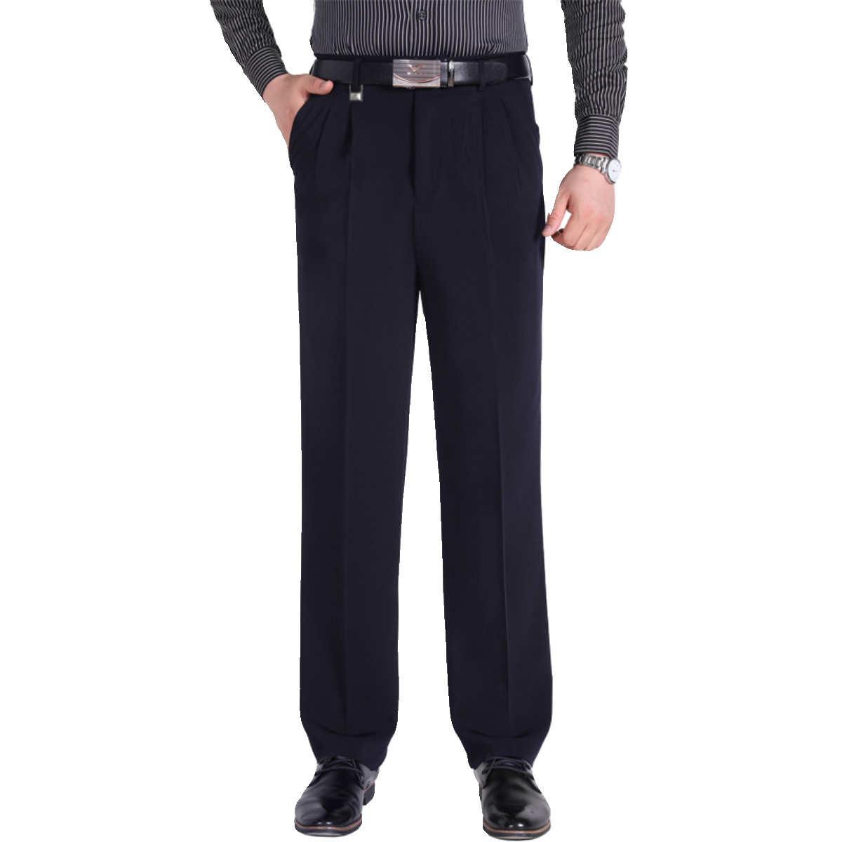 皮尔卡丹高端冬季加绒加厚羊毛西裤男高腰中老年人双褶宽松西装裤