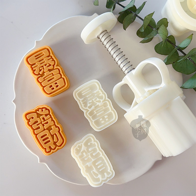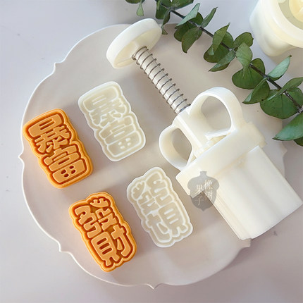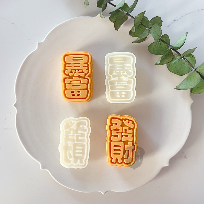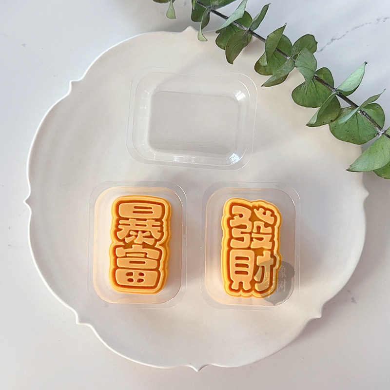 50g暴富发财新年凤梨酥糕点烘焙工具 中秋节文字祝福酥皮月饼模具