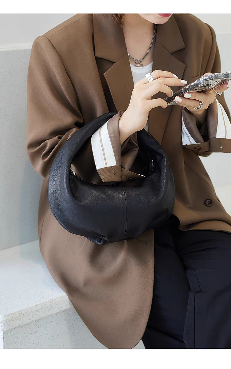 云朵包女褶皱包高级感真皮紫色包包手提包高级感牛皮手拎包饺子包