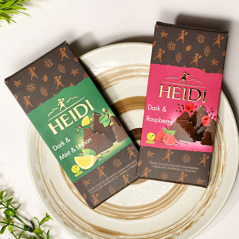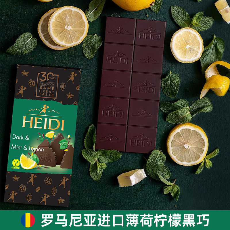 罗马尼亚进口HEIDI赫蒂黑巧克力排块纯可可脂75%85%树莓薄荷零食