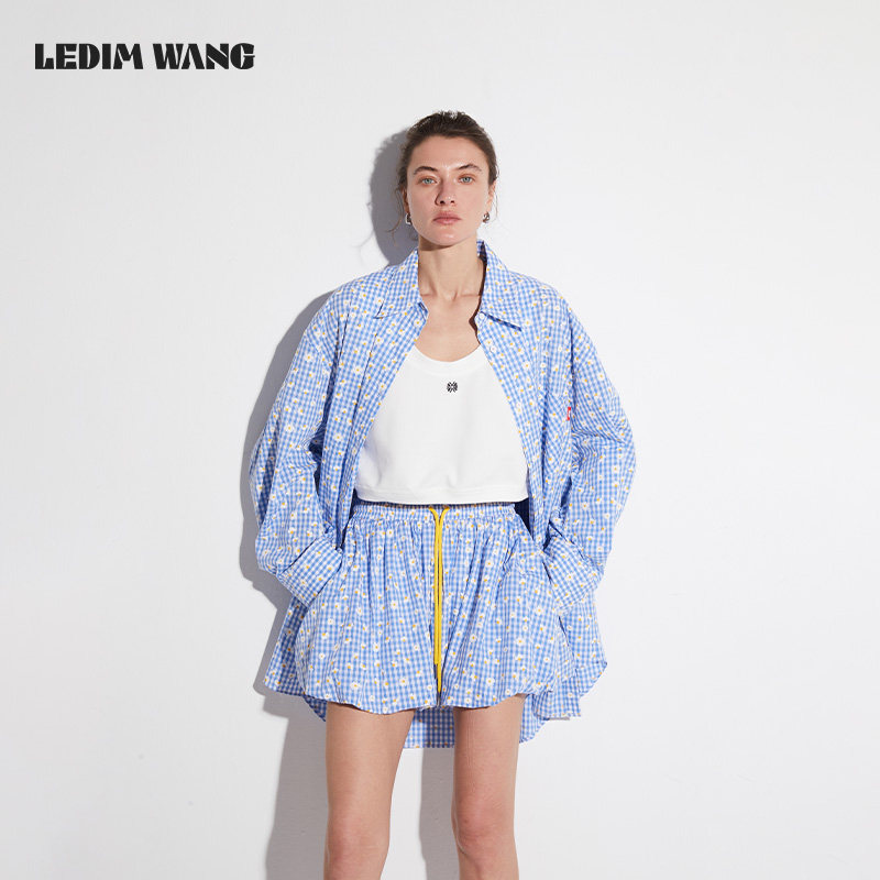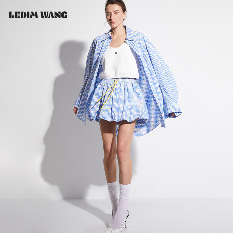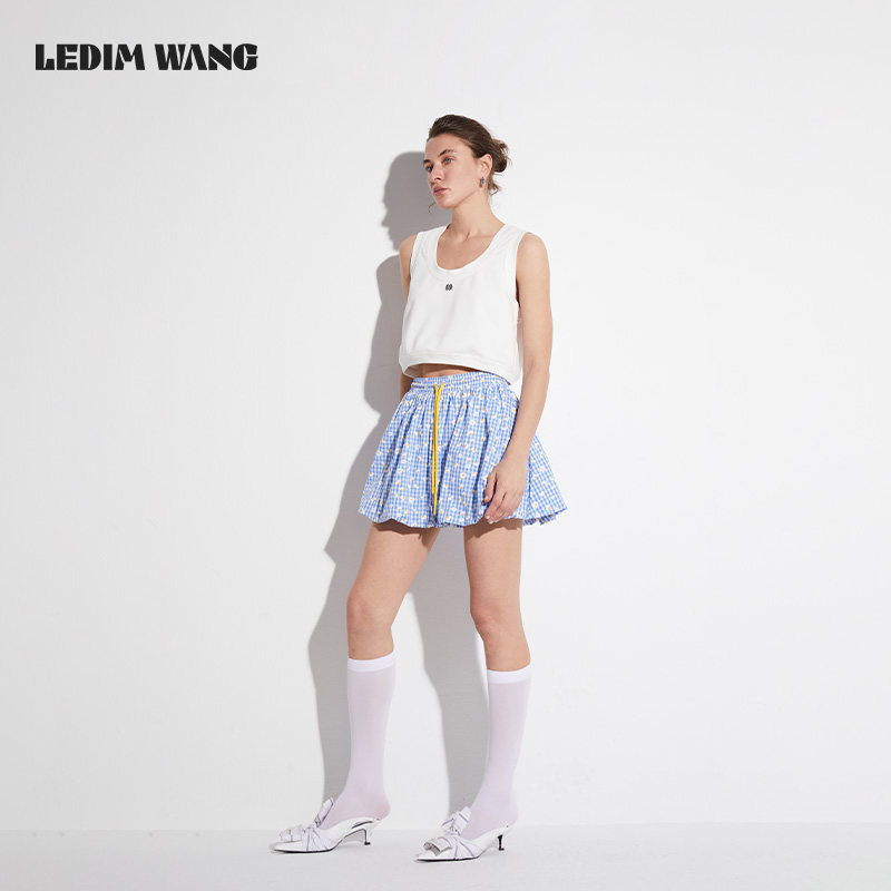 LEDIM WANG【红标系列】雏菊格纹半身裙女夏2025新款纯棉蓬蓬裙