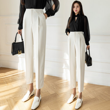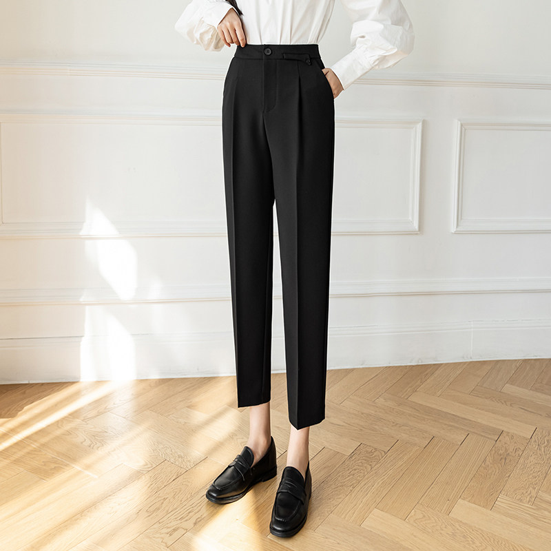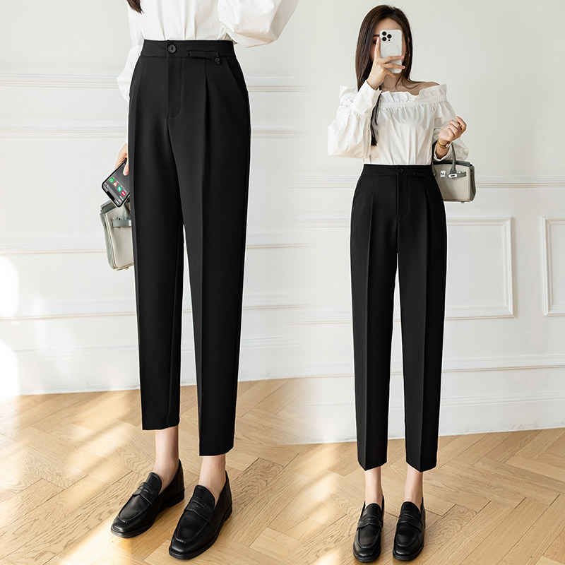 烟管裤女2025春夏新款休闲裤高腰西装直筒9分裤简约小脚长裤韩版