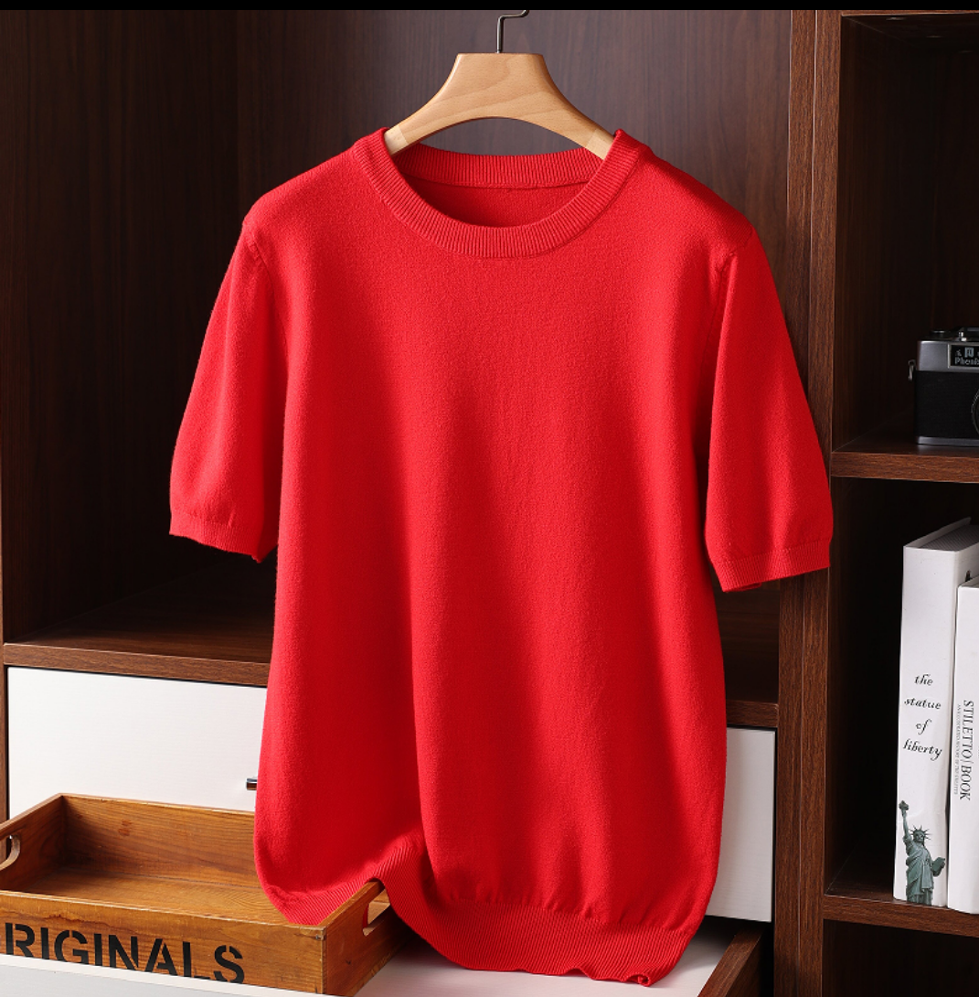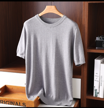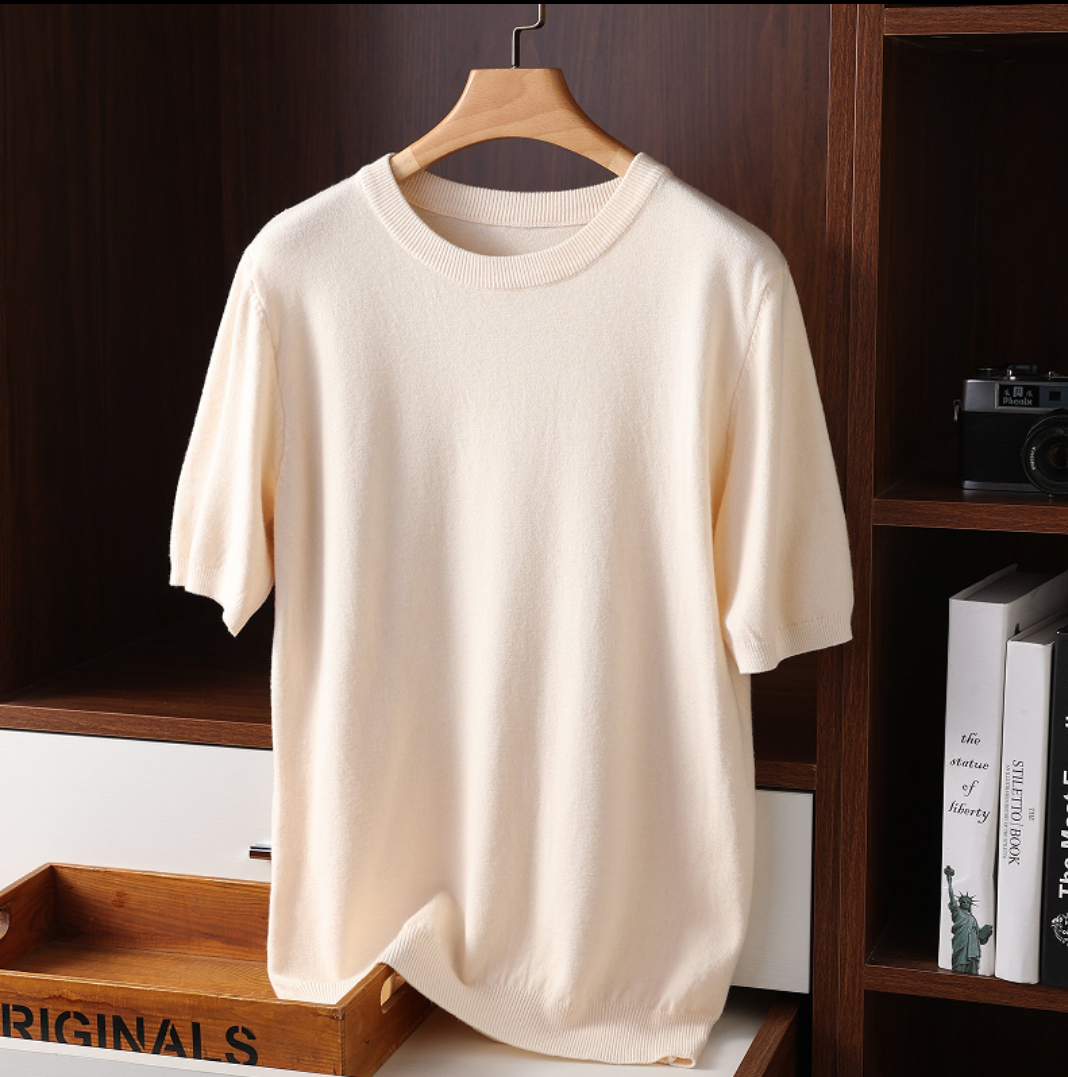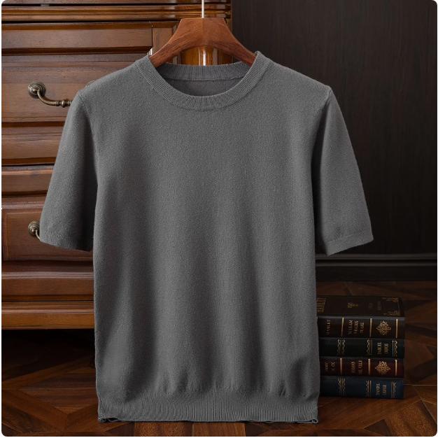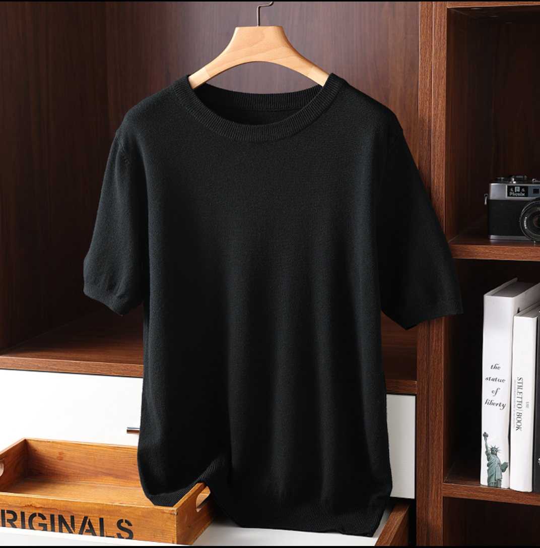 针织短袖男加厚春秋冬毛衣打底衫加肥加大码圆领半袖羊毛五分袖