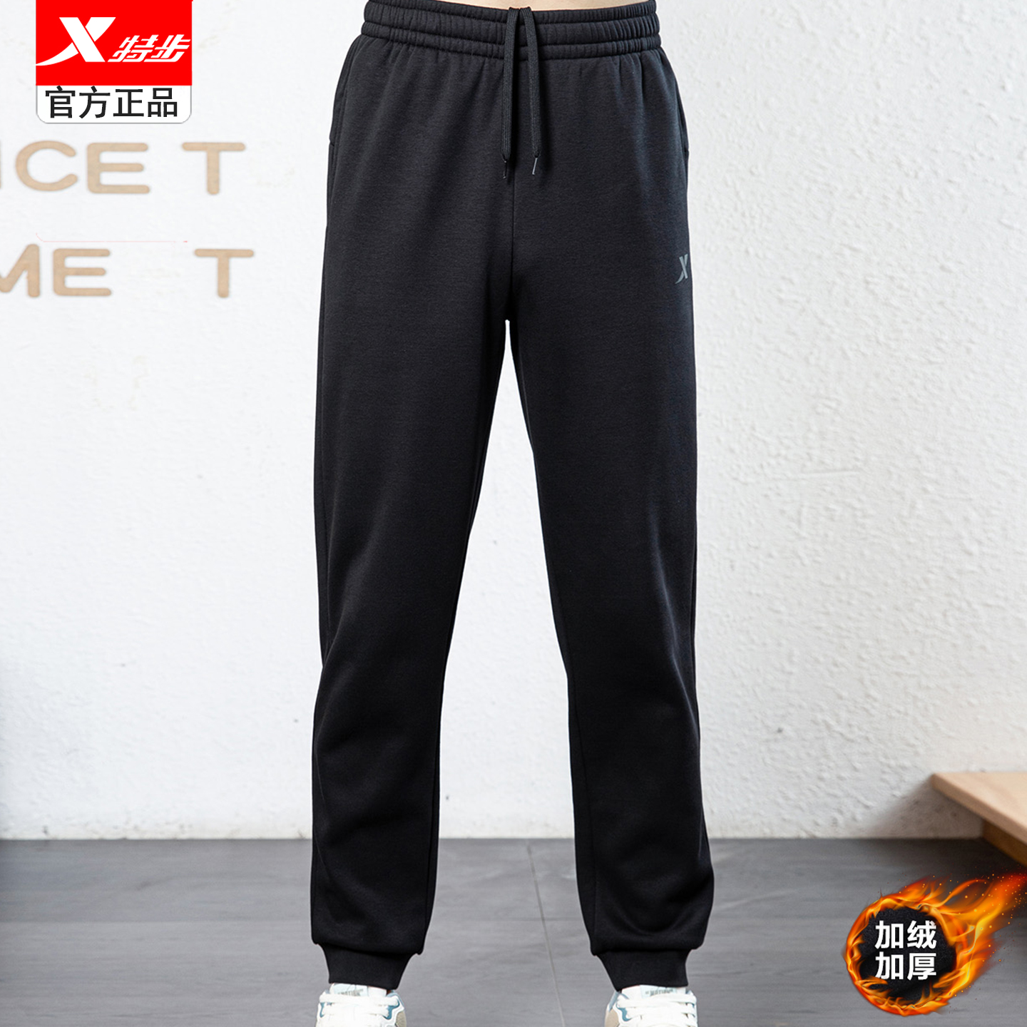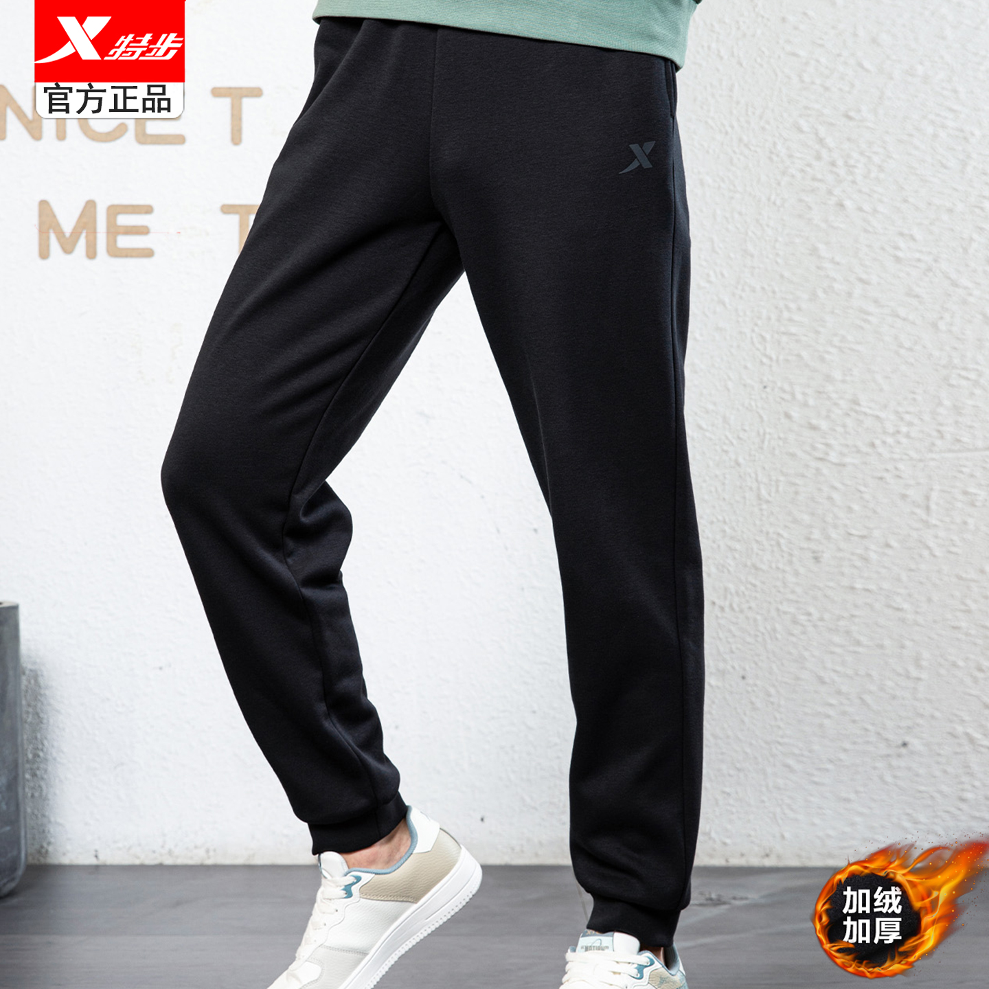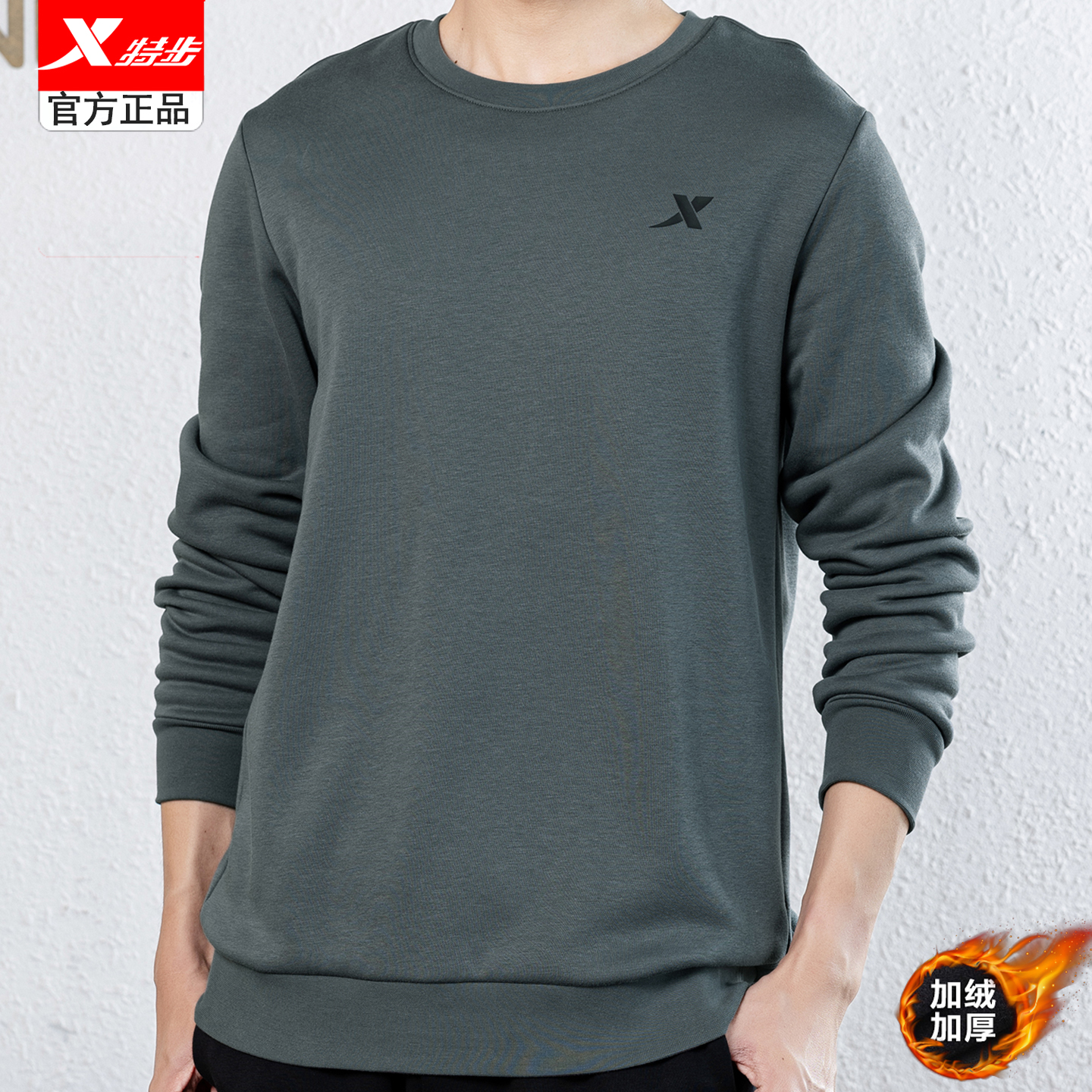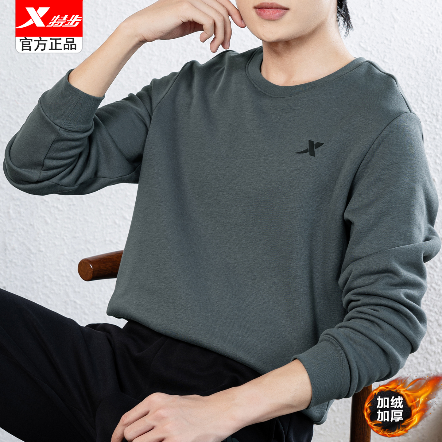 特步运动套装两件套圆领卫衣束脚长裤加绒保暖健身综合训练服男装