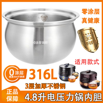 316L不锈钢锅胆适用美的电压力锅4.8LYL50Easy202/03/507/CLY5066