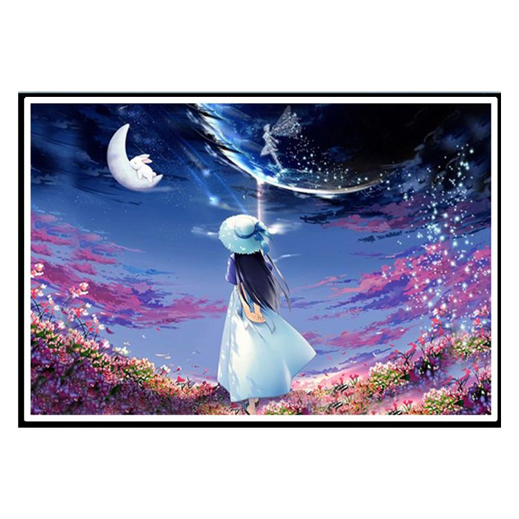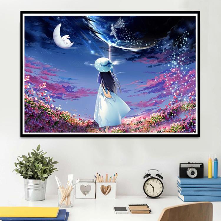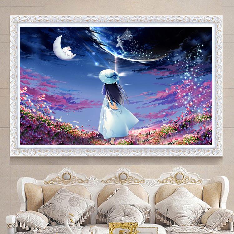 钻石画满钻2024新款梦幻星空风景5d点贴钻十字绣卡通女孩卧室客厅