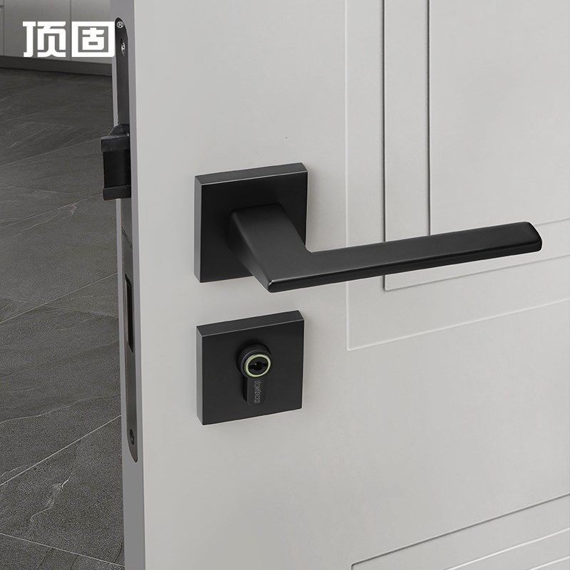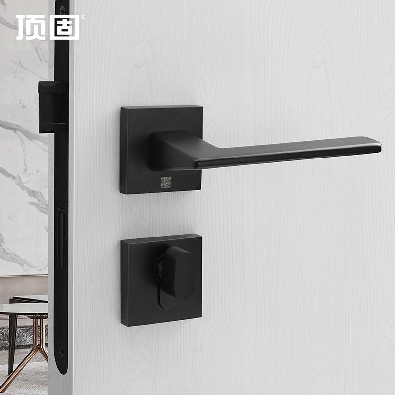顶固卧室门锁室内静音家用木门锁锁具化妆室通用型灰黑木门把手