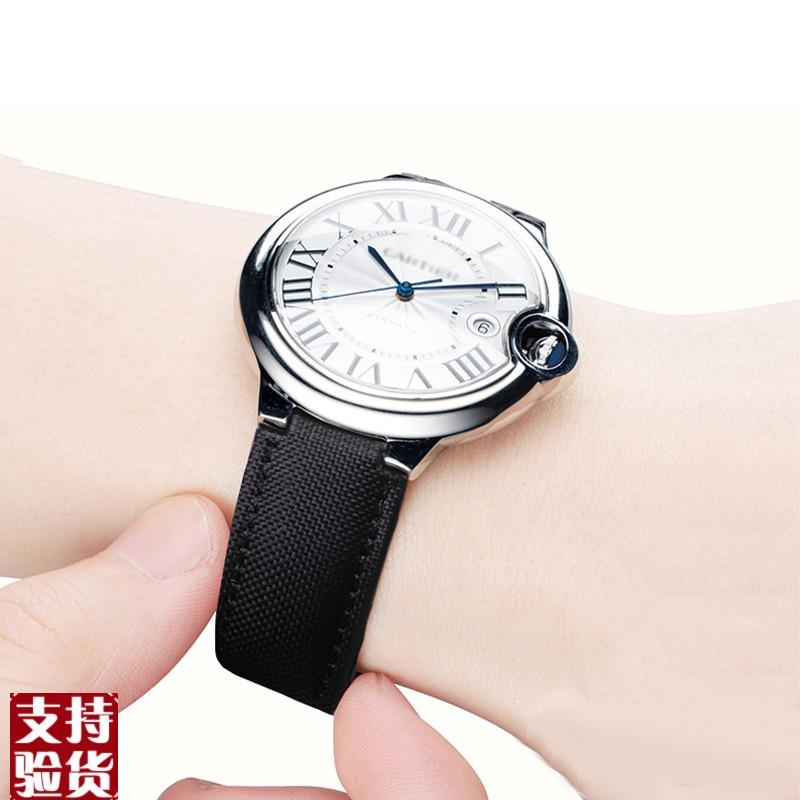 原装适配帆布手表带适配Cartier卡地亚蓝气球黑骑士凸口黑色尼龙