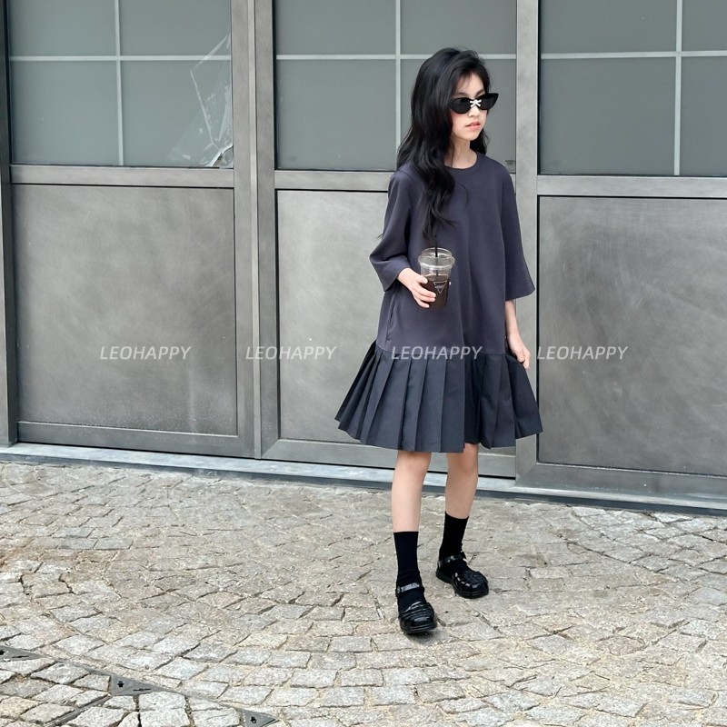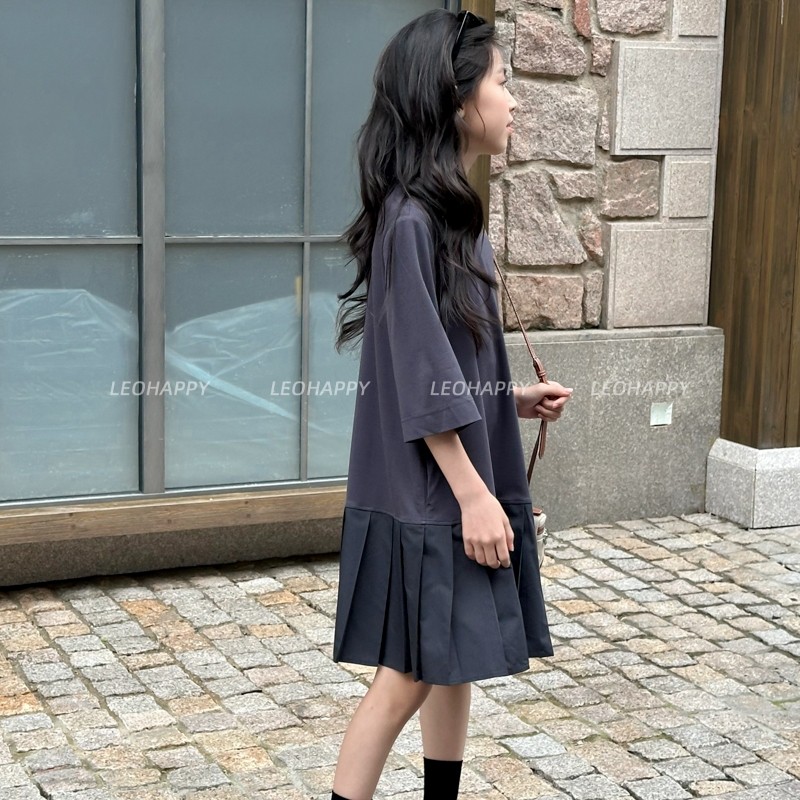 LEOHAPPY女童连衣裙夏季新款儿童百褶拼接针织T恤裙中大童休闲裙