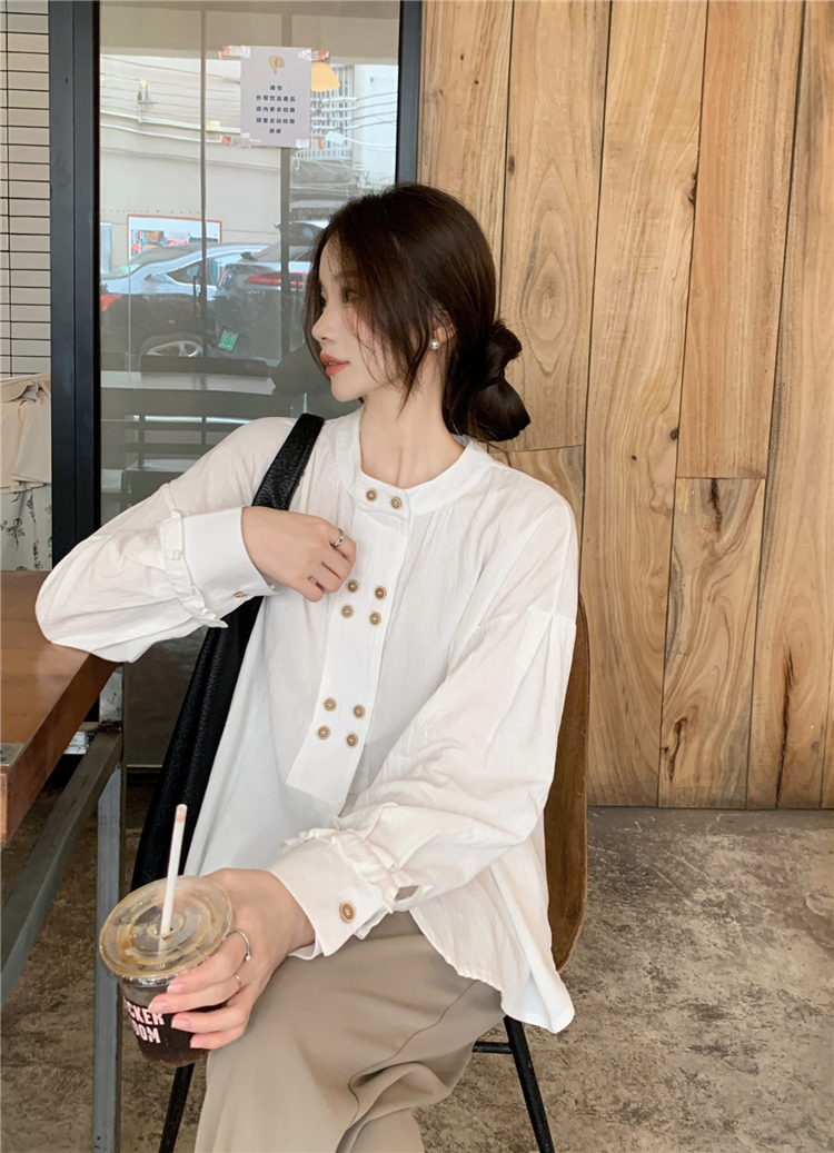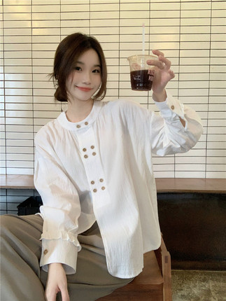2025年新款时尚复古个性白色衬衫女士棉秋装衬衣女长袖上衣百搭