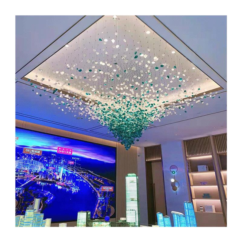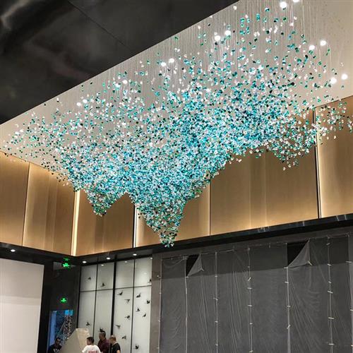 售楼部石头吊灯酒店大堂宴会厅现代简约复式楼楼梯制作工程水晶灯