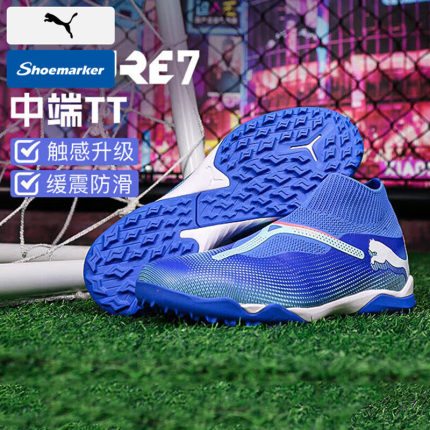 Puma彪马足球鞋男鞋TT碎钉无鞋带比赛训练中帮蓝色运动鞋107930
