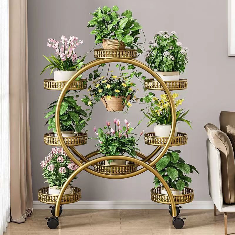花架子客厅落地式可移动带轮绿萝花盆架铁艺多层阳台花架家用落地