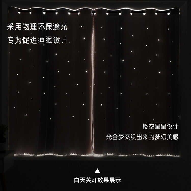 【送伸缩杆】免打孔安装全遮光窗帘布纱一体送杆遮阳布出租房卧室