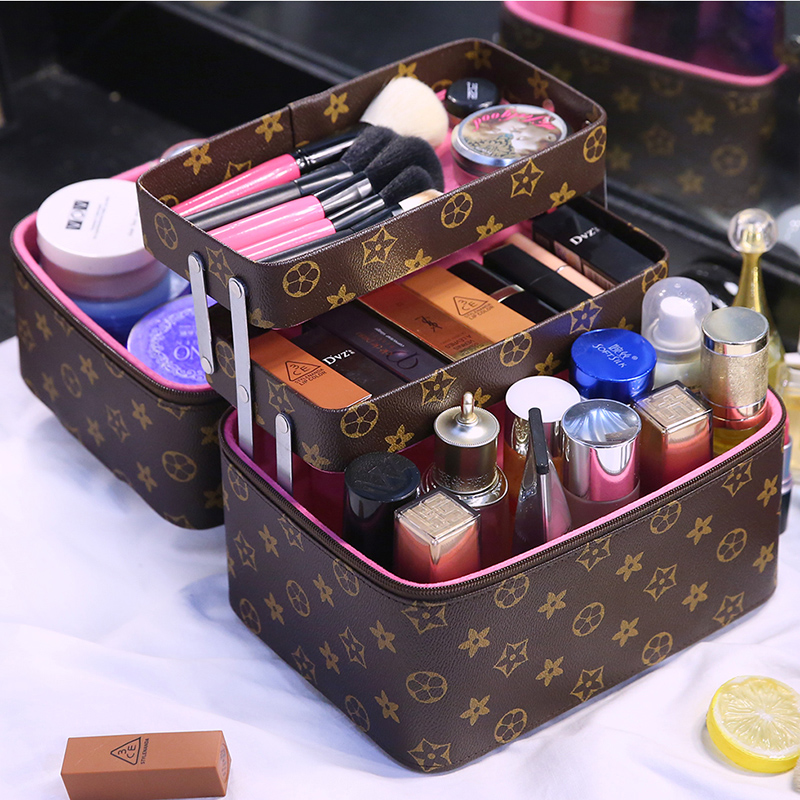 多功能化妆包大容量简约便携洗漱品收纳盒大号可爱多层化妆箱手提