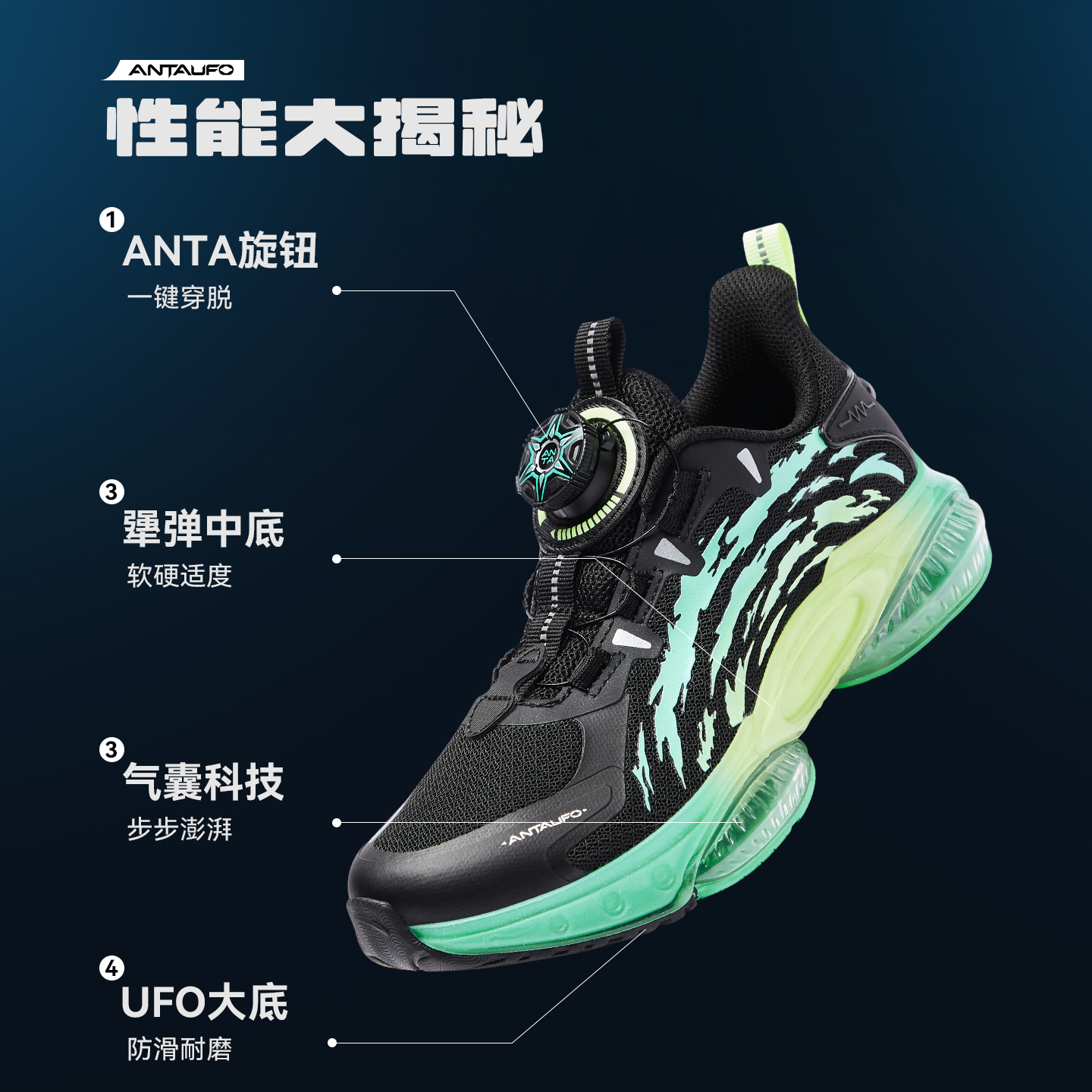 安踏儿童运动鞋UFO旋钮扣跑鞋夏季新款男大童跑步鞋透气男童鞋子