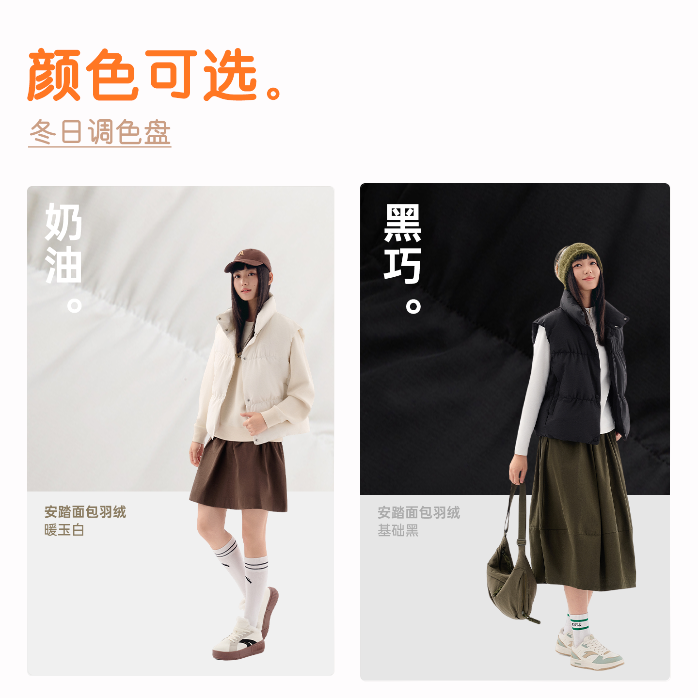 安踏面包羽绒丨防泼水羽绒服马甲女冬季新款宽松保暖时尚休闲外套