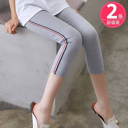 春夏季薄款莫代尔纯棉9分打底裤女外穿7侧条运动弹力七分裤九分裤