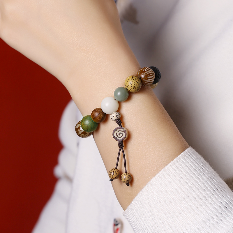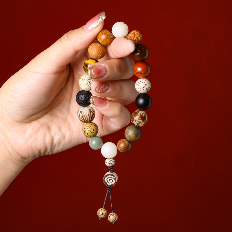 18子十八籽多宝菩提手串佛珠朱砂生肖本命佛红绳手链饰品古国风