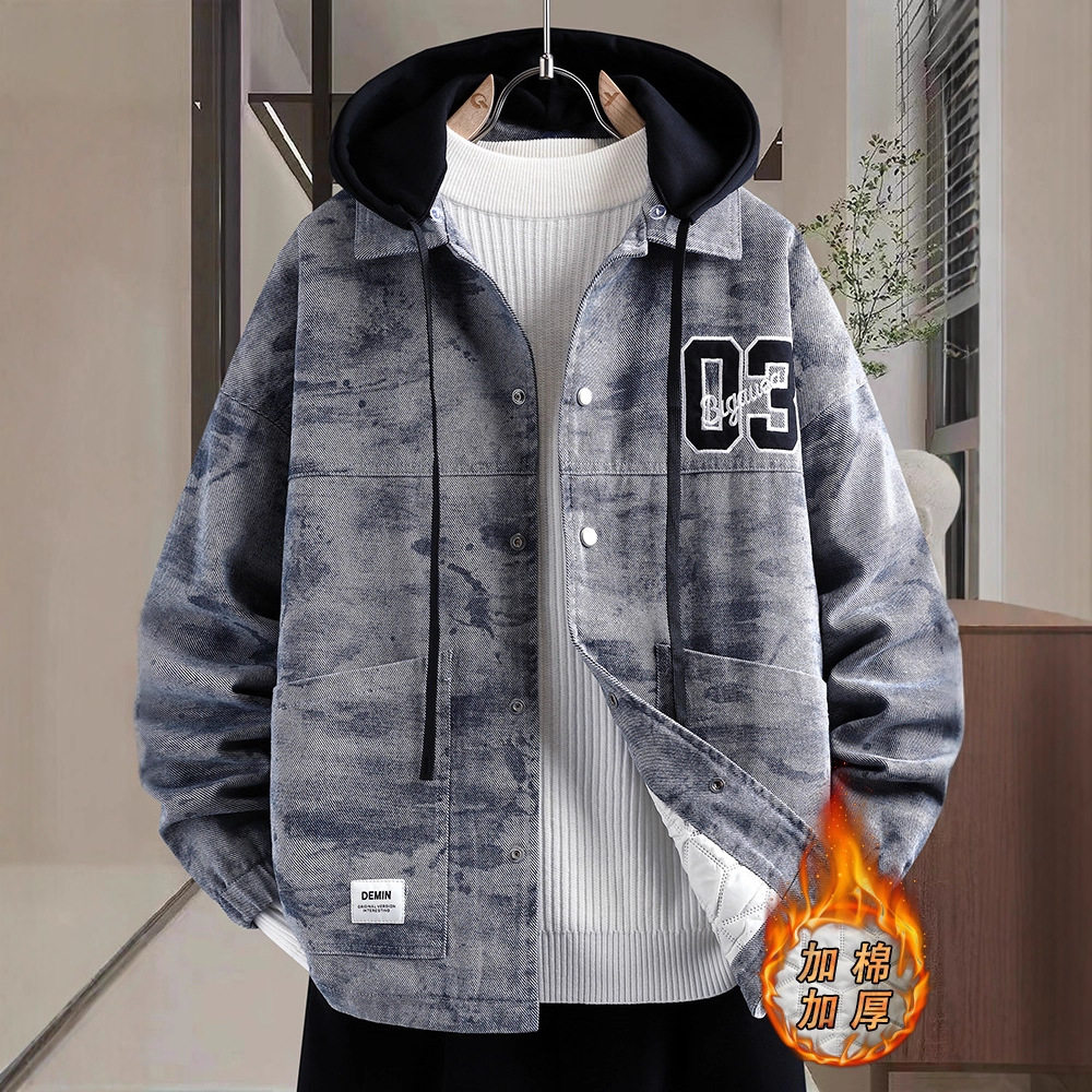 德国冬季新款牛仔外套男生大学生加棉加厚夹克青少年潮牌棉衣服男