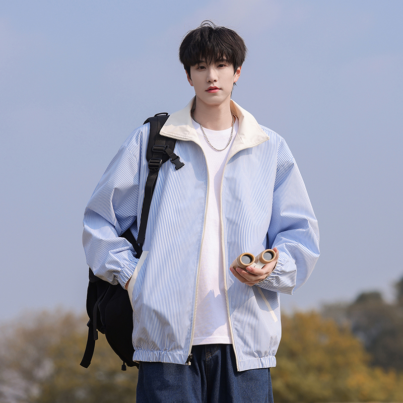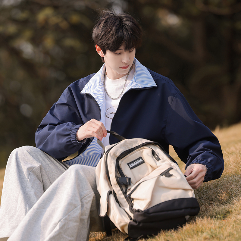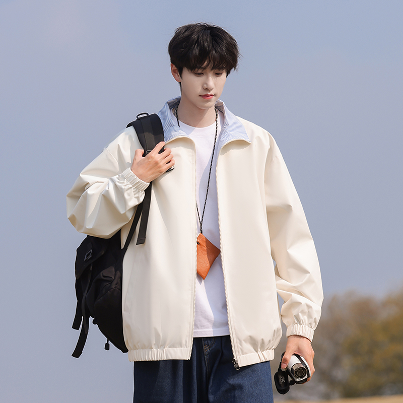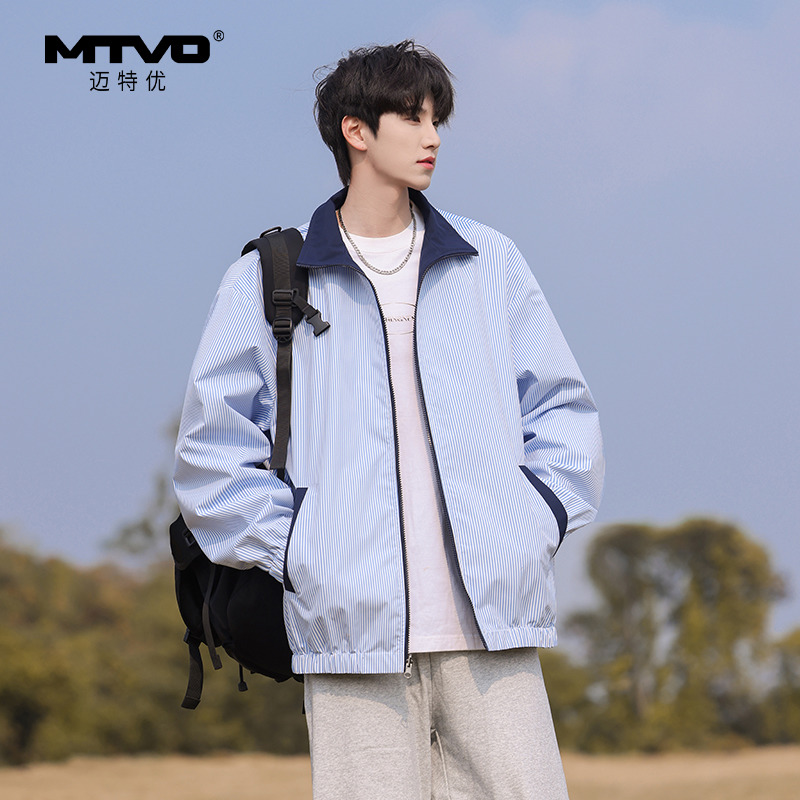 迈特优美式双面穿外套男女春季新款潮牌宽松立领休闲工装夹克