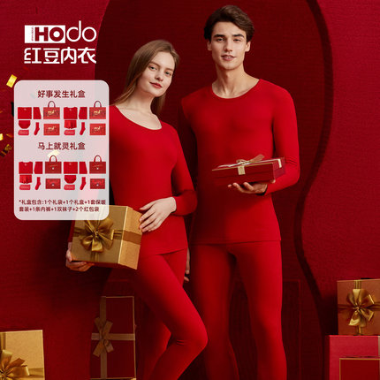 红豆情侣红色本命年内衣马年男女结婚礼物保暖套装内裤袜子礼盒装