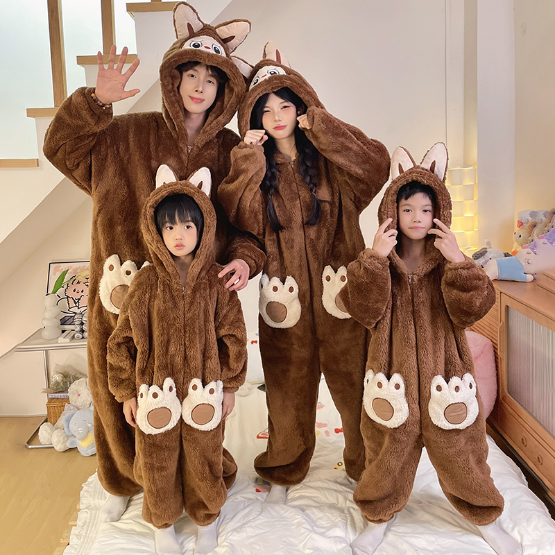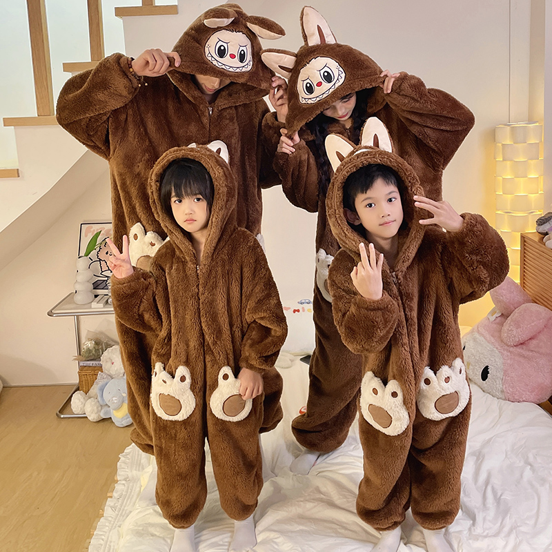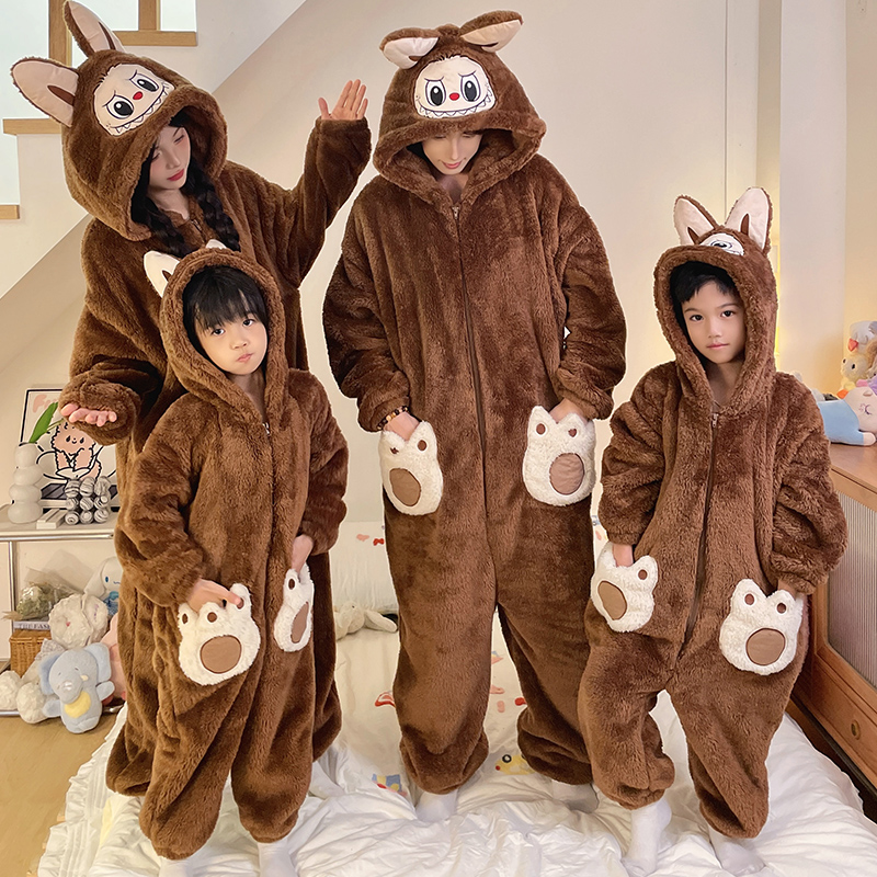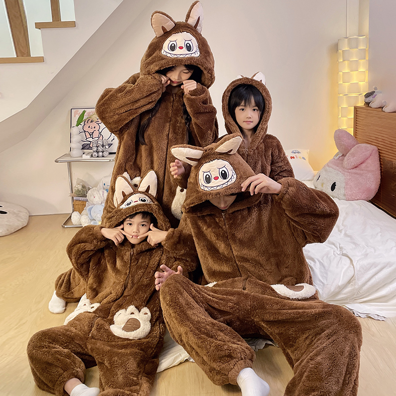 珊瑚绒睡衣连体拉布布母女冬装2025新款儿童家居服亲子装一家三口