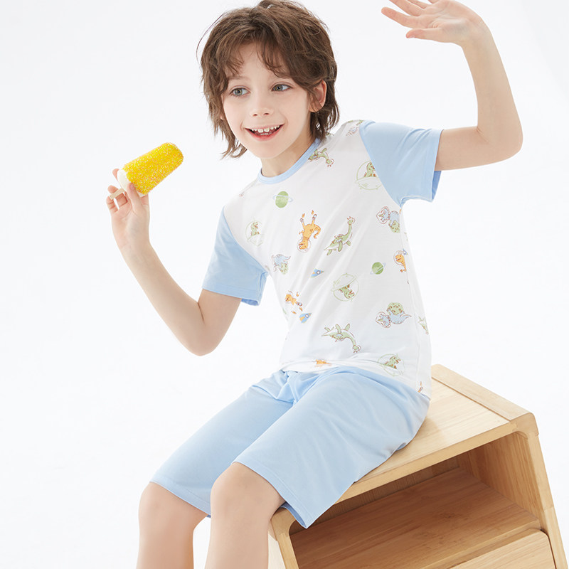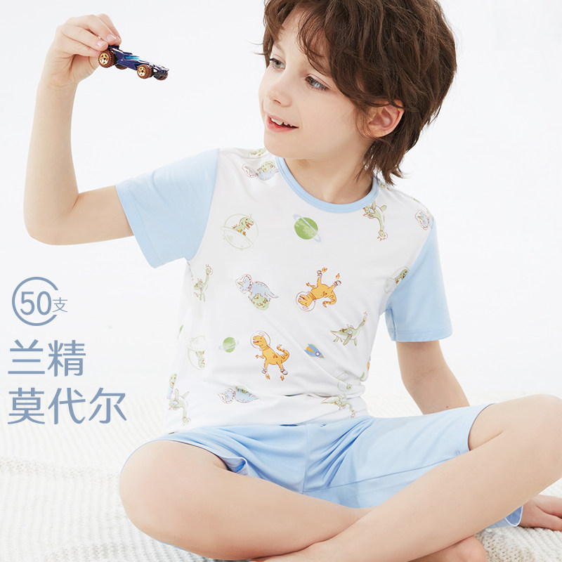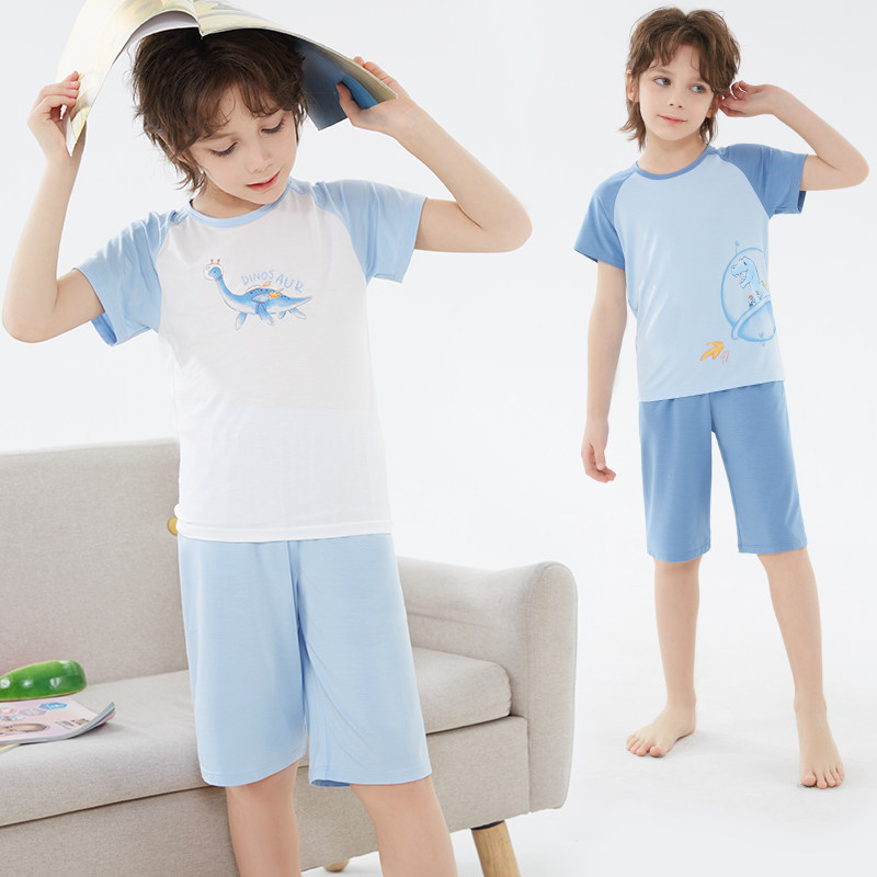 男童睡衣夏季薄款儿童家居服套装中大童莫代尔空调服冰丝短袖套装