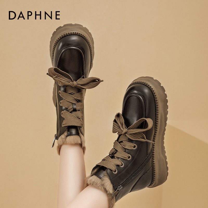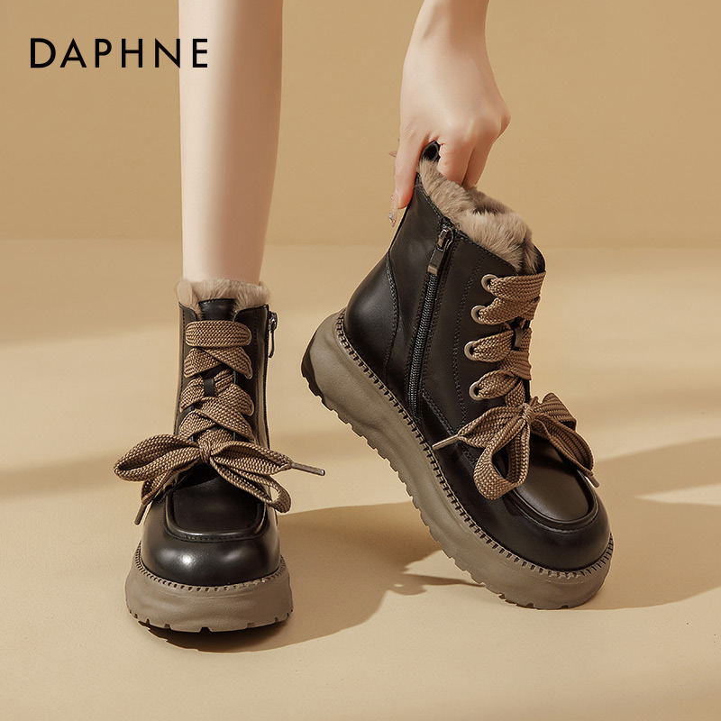 达芙妮厚底雪地靴女冬季加绒东北大棉鞋2025新款加厚保暖马丁靴子