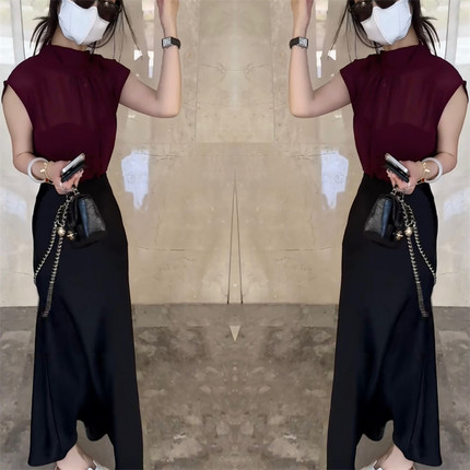 上衣+半身裙网红修身气质爆款