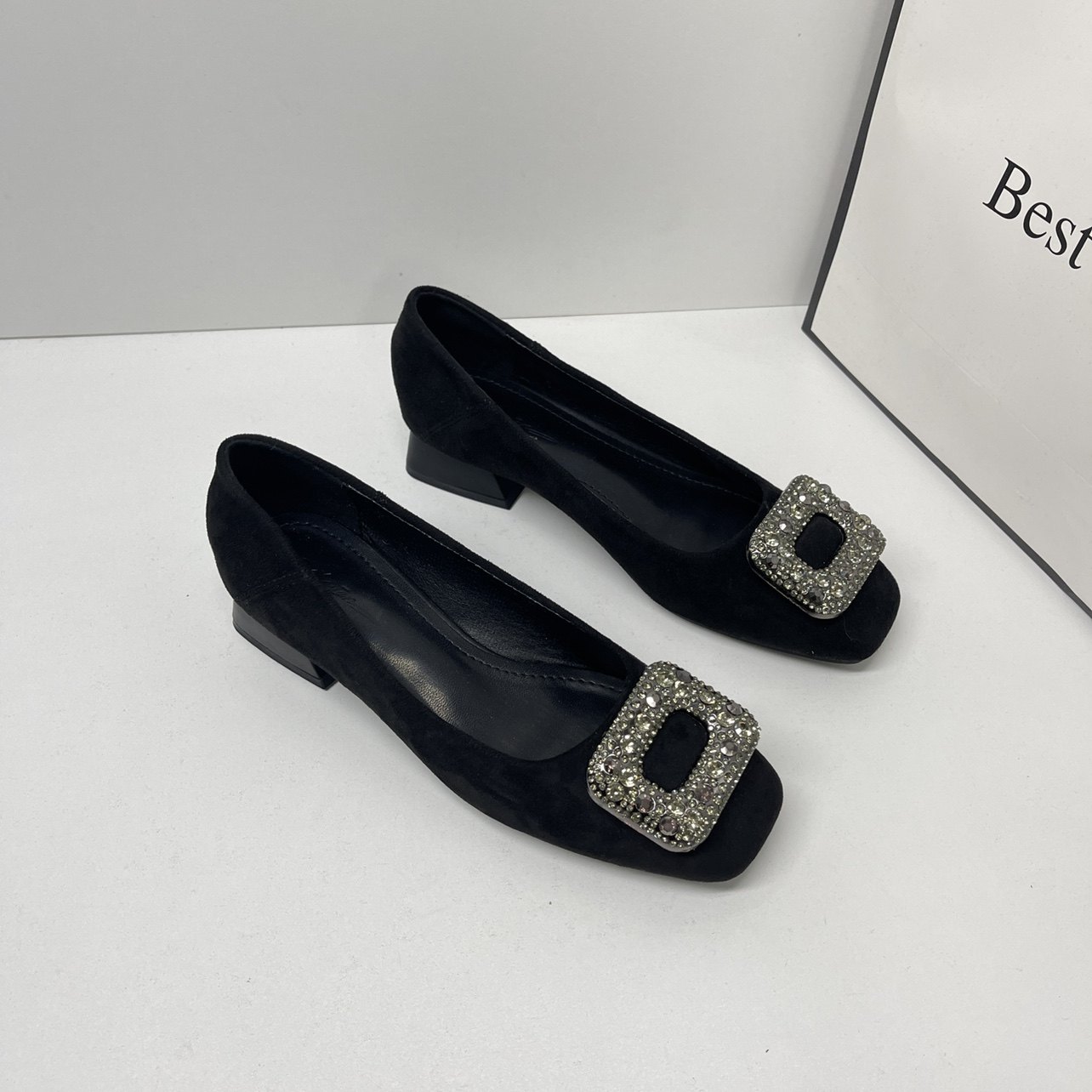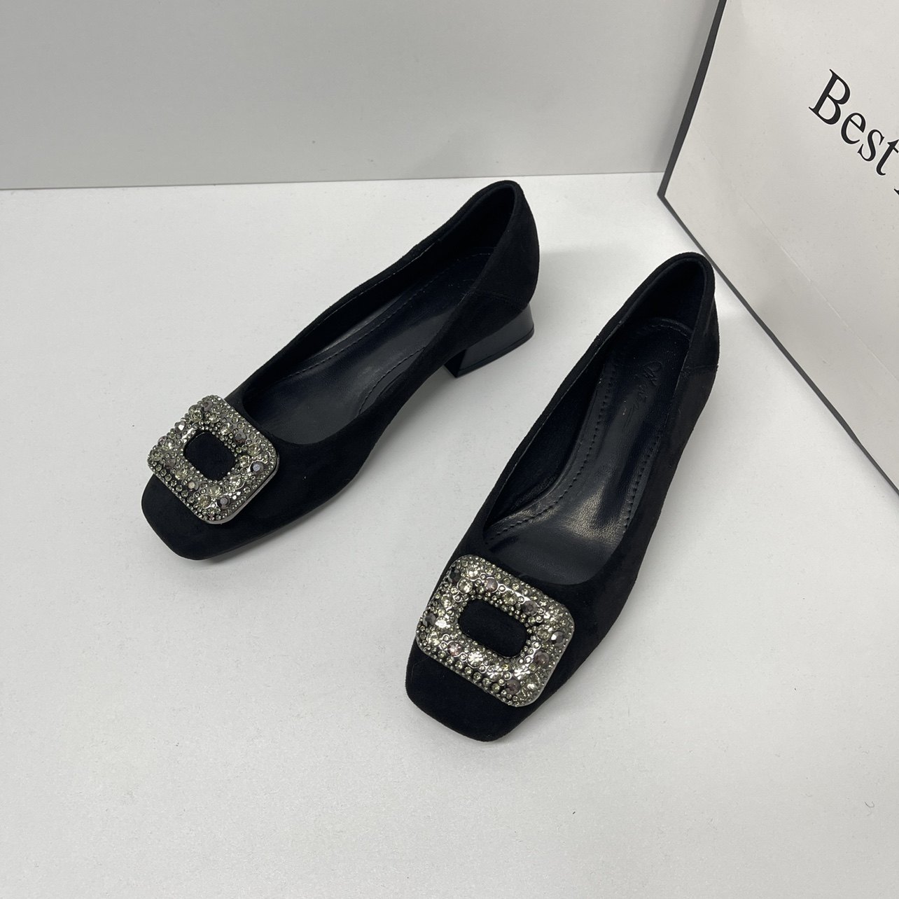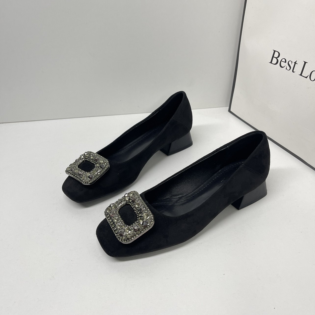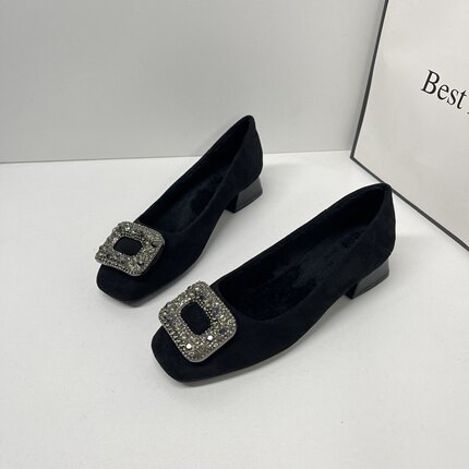 加绒3cm软底浅口绒面粗跟工作鞋