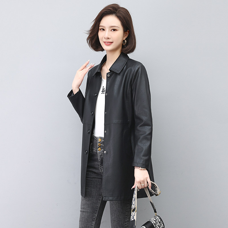 真皮皮衣女中长款修身2025年春秋新款海宁绵羊皮风衣黑色显瘦外套