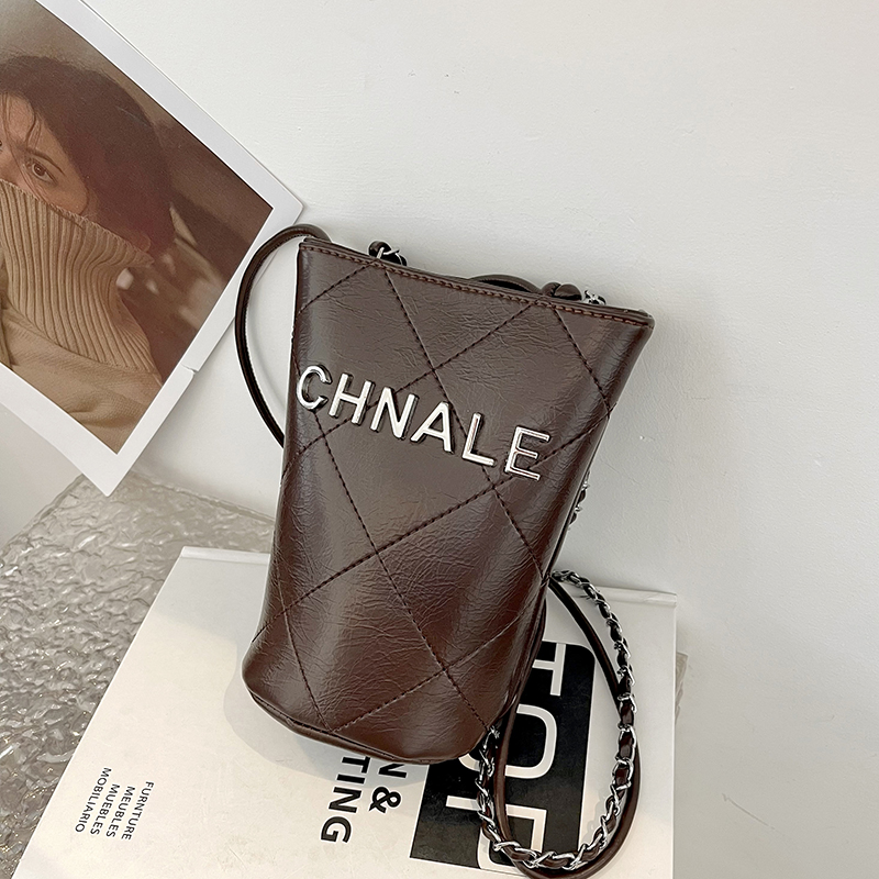 女包2024新款小香风菱格链条包水桶包单肩斜挎软皮手机包