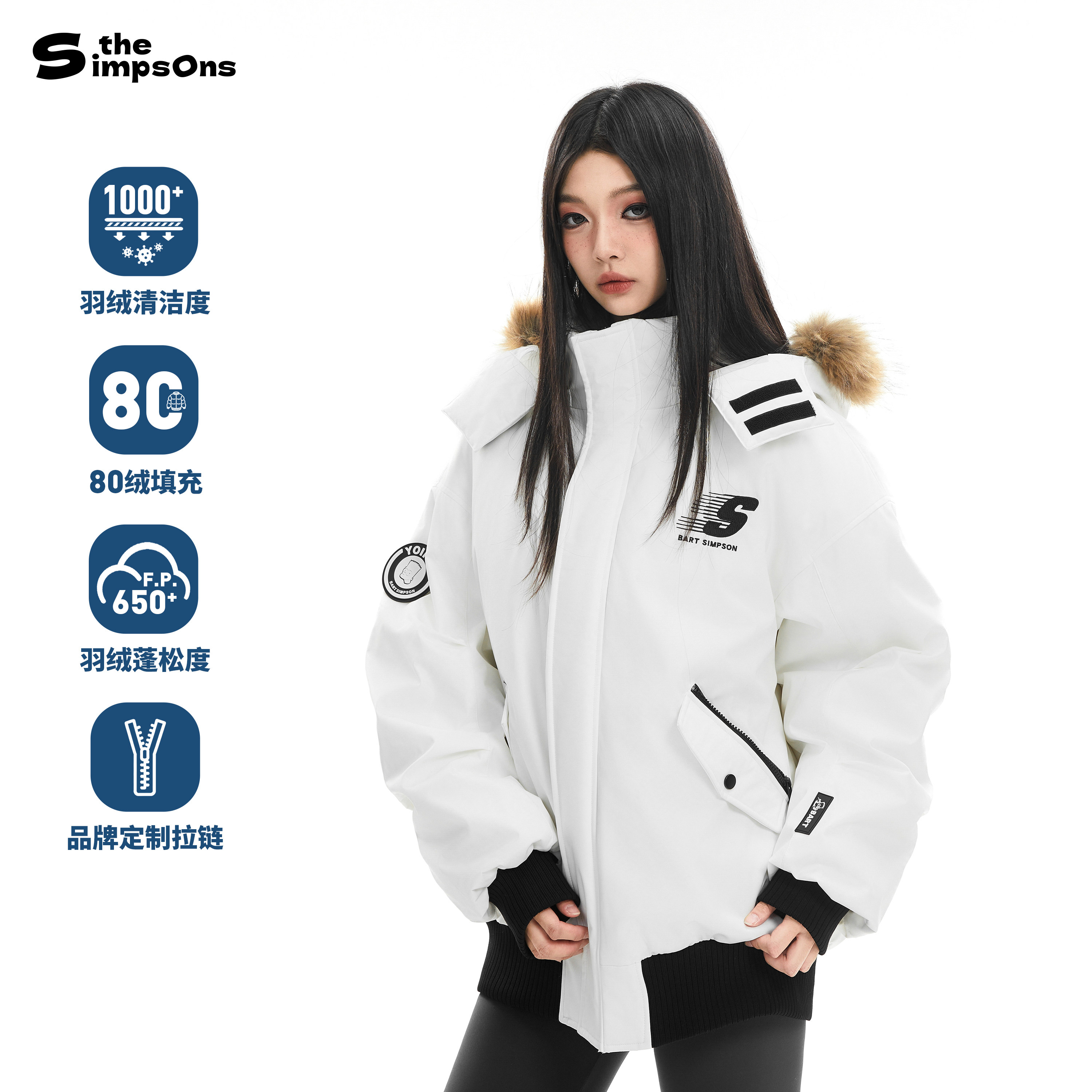 辛普森一家羽绒服男防寒东北零下工装加厚保暖白色短款派克服外套