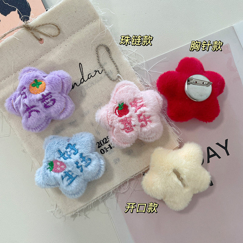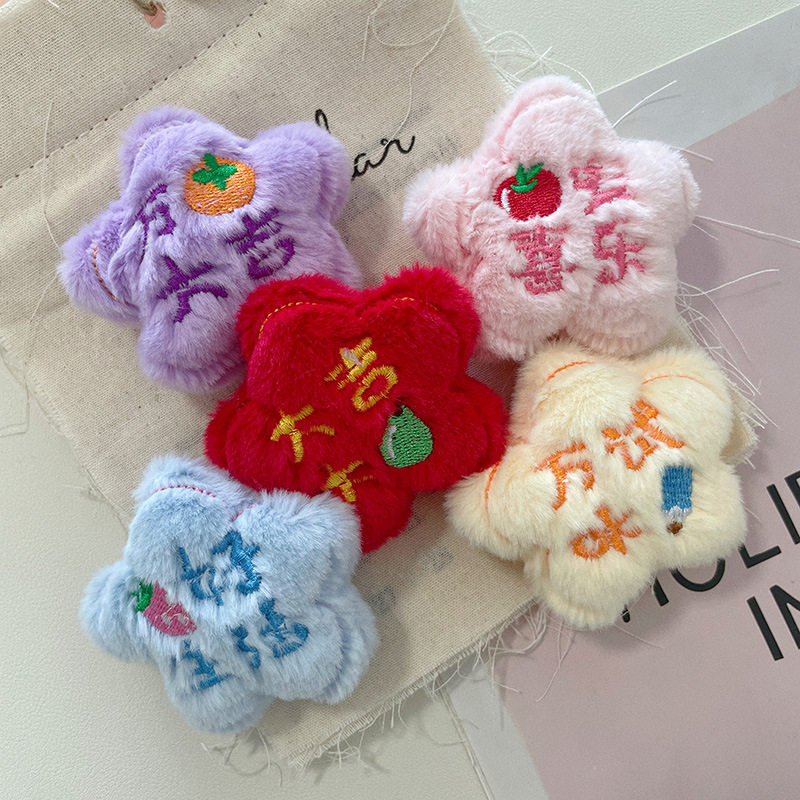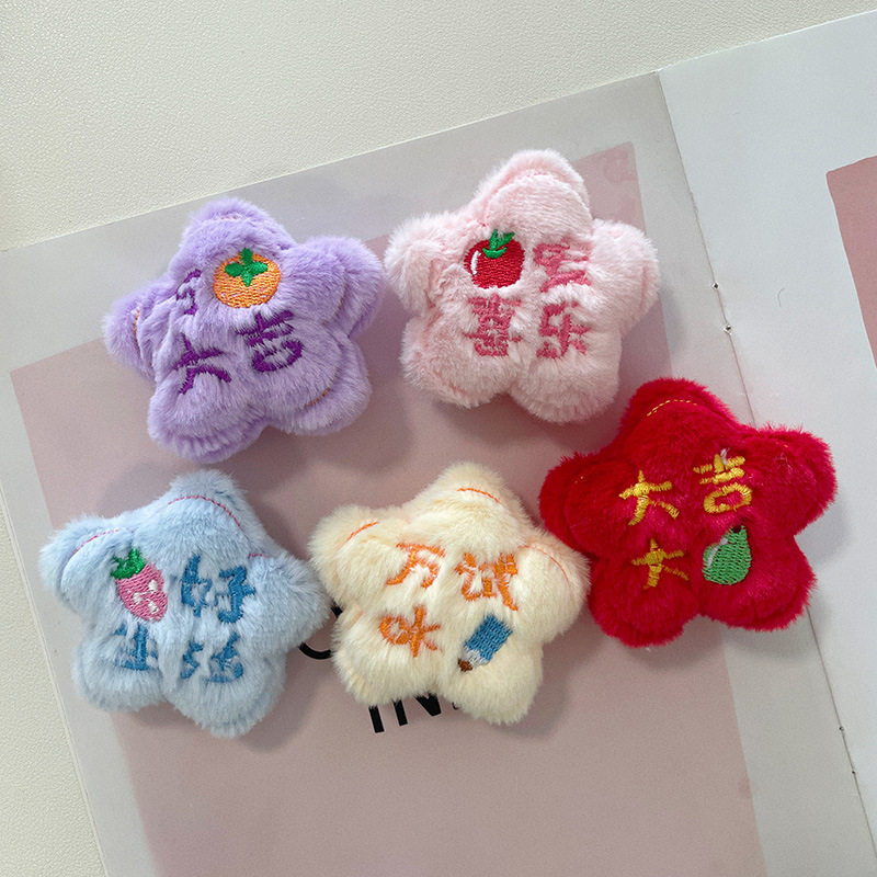 创意五角星毛绒玩偶挂件diy拖鞋配件祝福星星胸针服饰发饰辅料