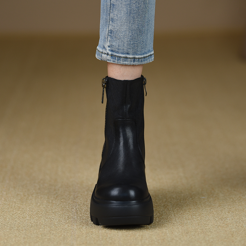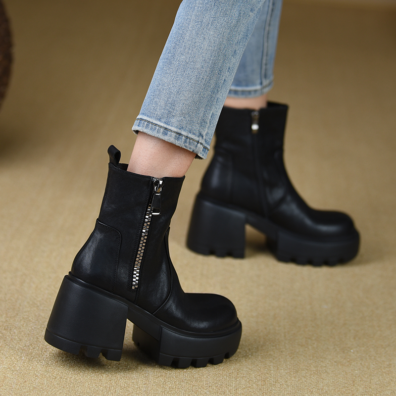 misili 马丁靴粗跟短靴2024秋冬季新款8.5高跟鞋防水台厚底女靴子