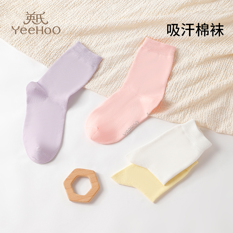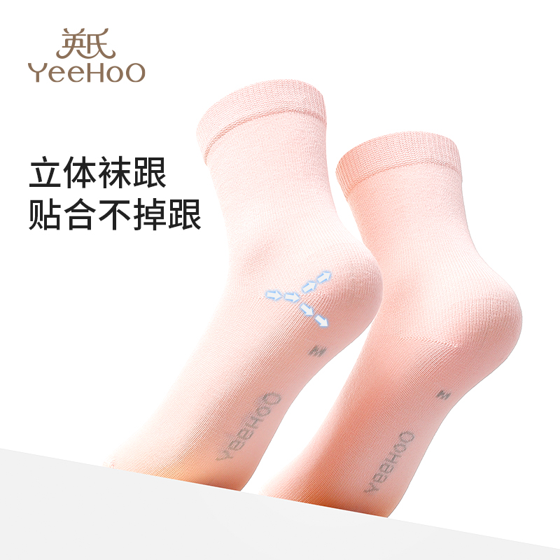 英氏儿童袜子纯棉春秋女童精梳棉中筒袜防滑袜无骨女孩学生棉袜