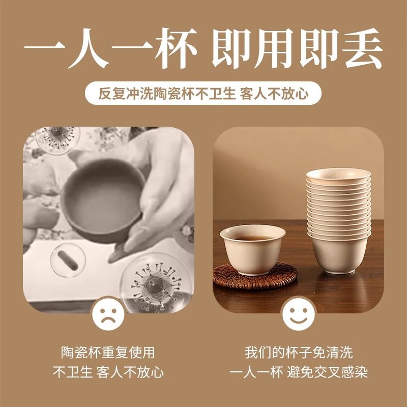 稻壳一次性茶杯功夫茶杯小号加厚家用耐高温泡茶喝茶杯子茶具水杯