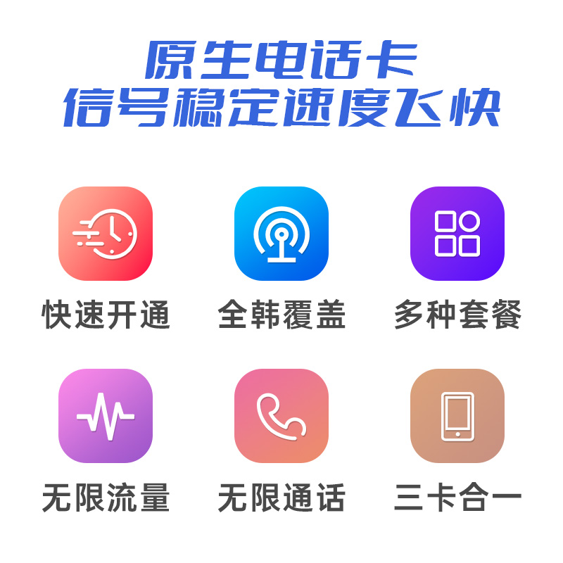 韩国电话卡含通话LG无限4G高速流量上网卡留学旅游苹果专用手机卡