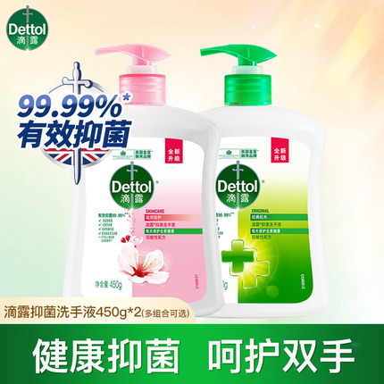 滴露洗手液抑菌滋润清香型包邮家用儿童家庭促销装补充装450g*2瓶