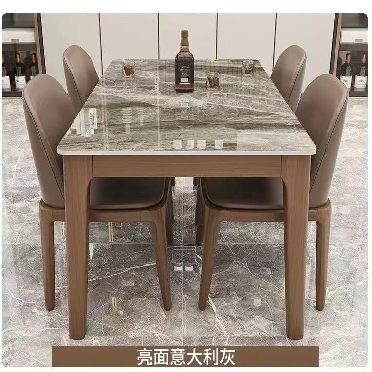 斯帝罗兰意式岩板餐桌椅组合现代家用实木桌架小户型轻奢长方形西
