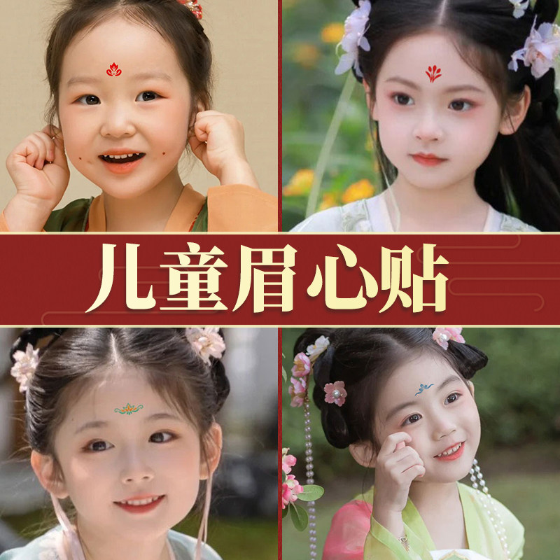 儿童眉心额头贴纸防水元旦舞台表演古风印花学生汉服花钿古装女孩