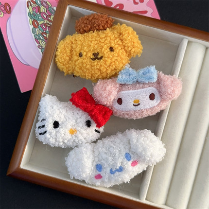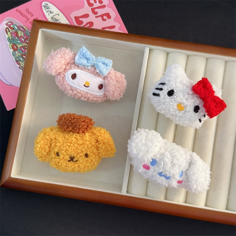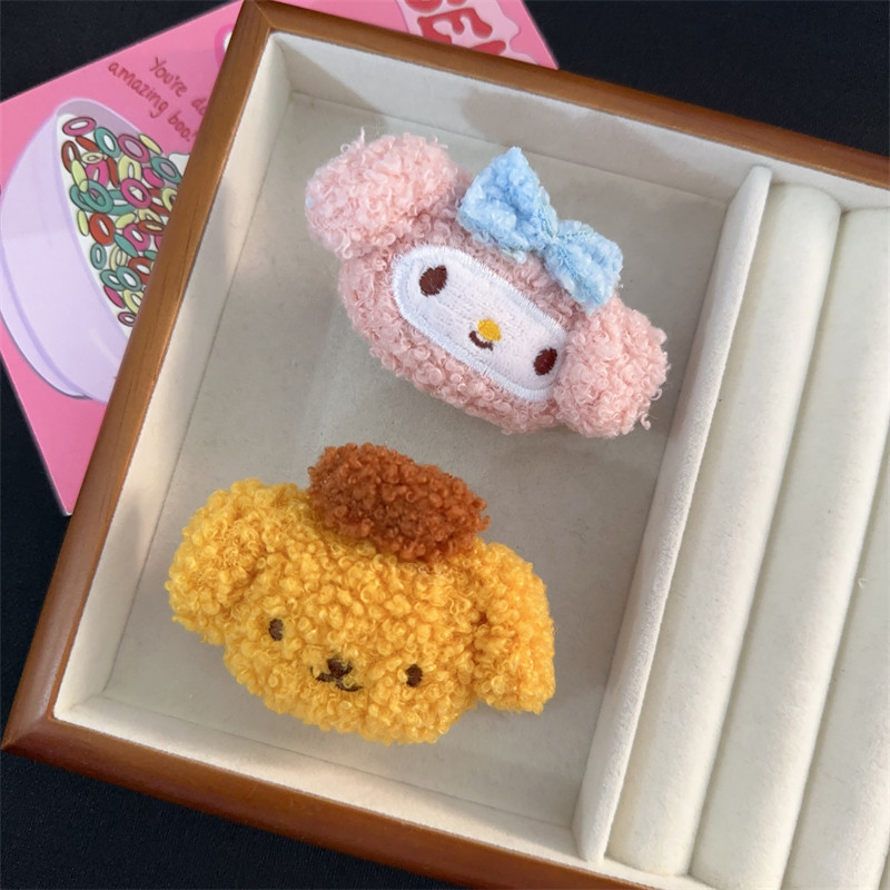 胸针发夹两用 hellokitty玉桂狗美乐蒂可爱毛绒公仔装饰边夹别针
