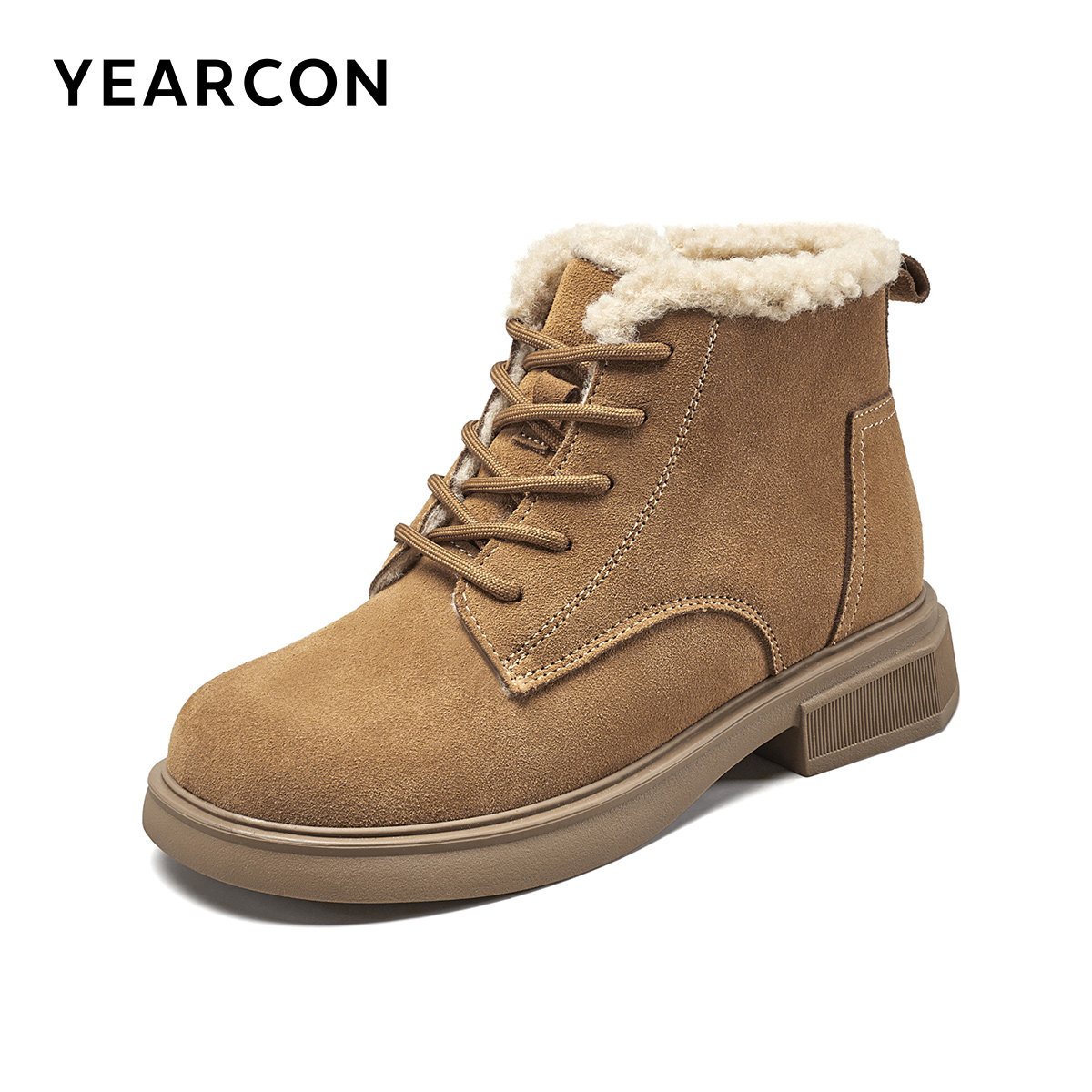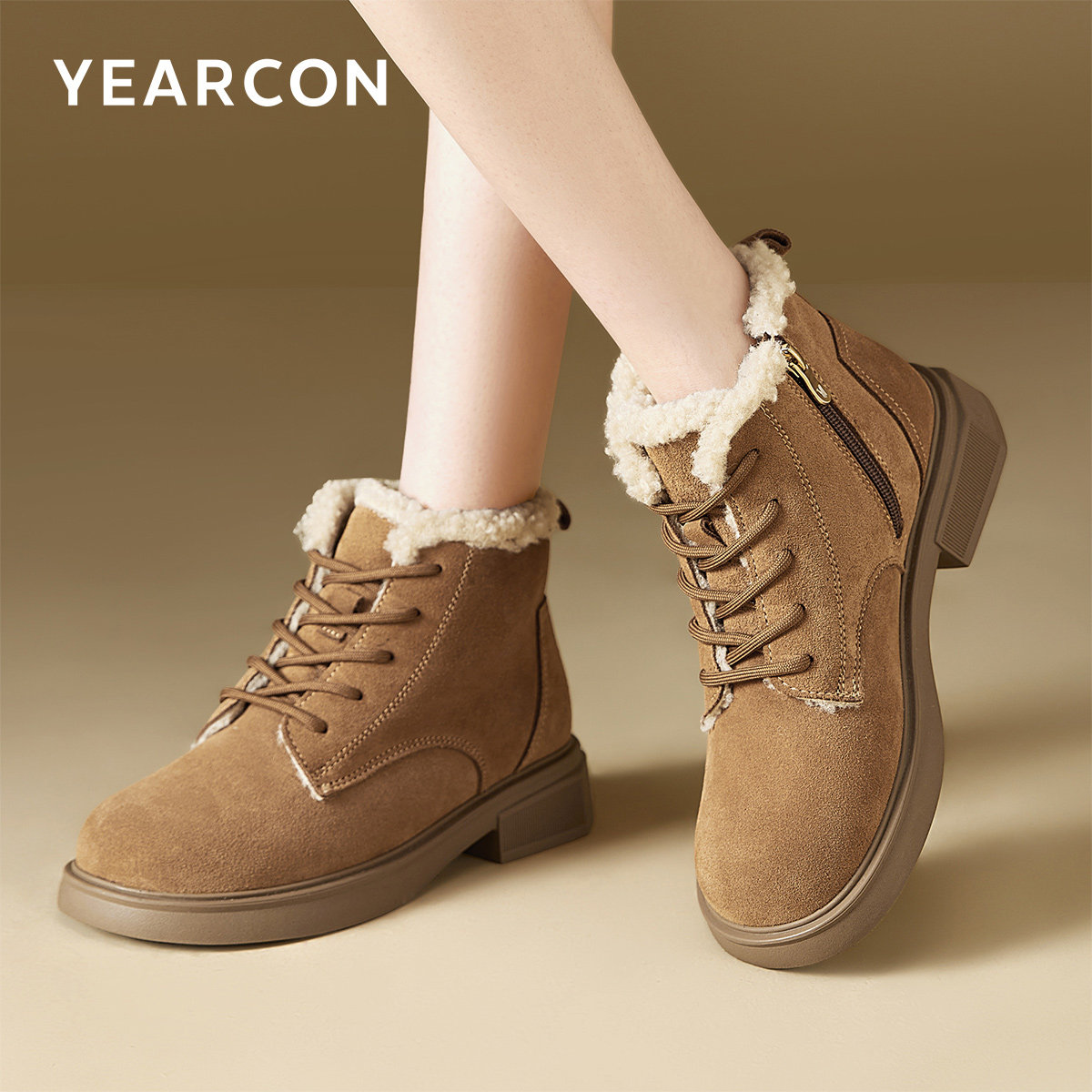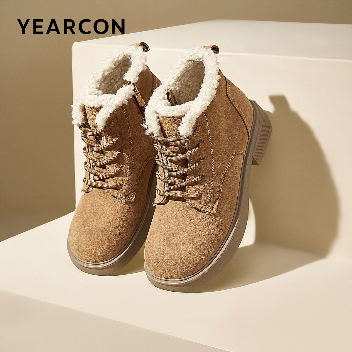 意尔康官方正品女鞋女靴马丁靴冬季雪地靴百搭轻便保暖加绒翻毛